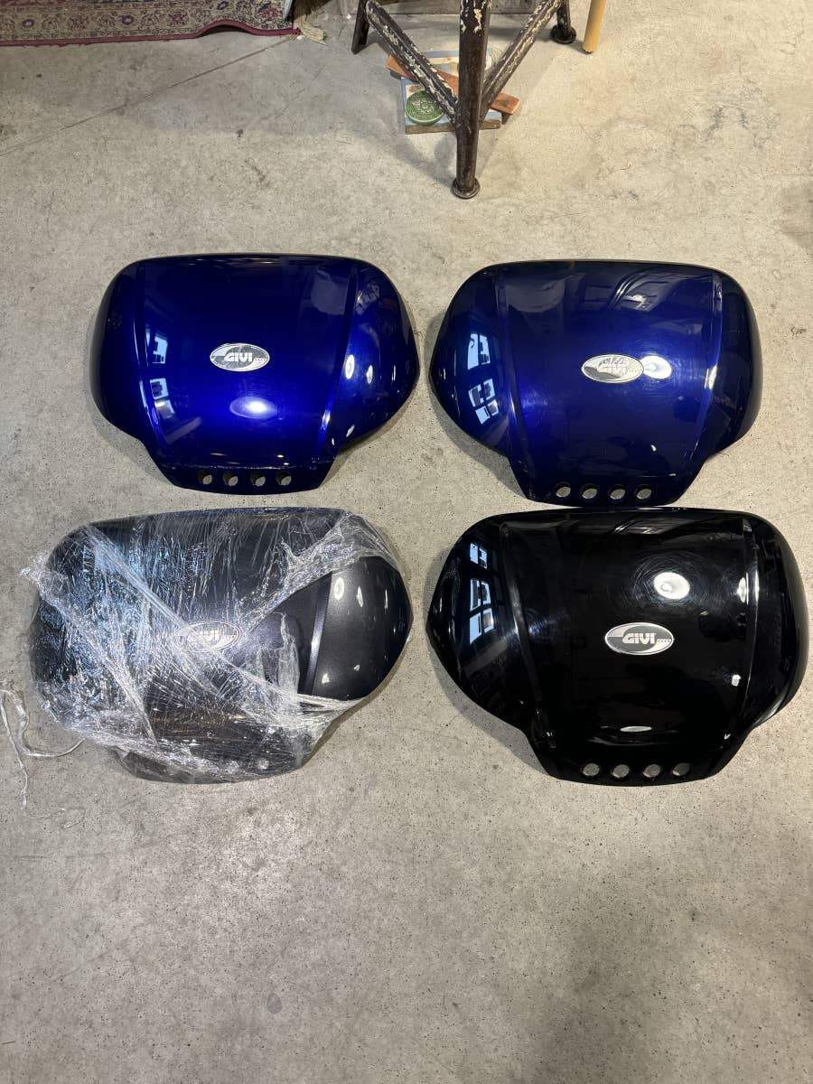 Prodáme originál lakované víka kufrů GIVI na kufry GIVI V46 barva: černá, šedá, modré navy, modrá steel dále GIVI Simply 470 barva: stříbrná GIVI Maxia 52 barva: stříbrn�� mat. dále vrchní kryt na topcase Kawasaki Versys (klasická zelená) za 699, a 1x givi (bílá) a 1x GIVI s emblémem suzuki (červený). Prosíme pouze VOLAT. Díky!
