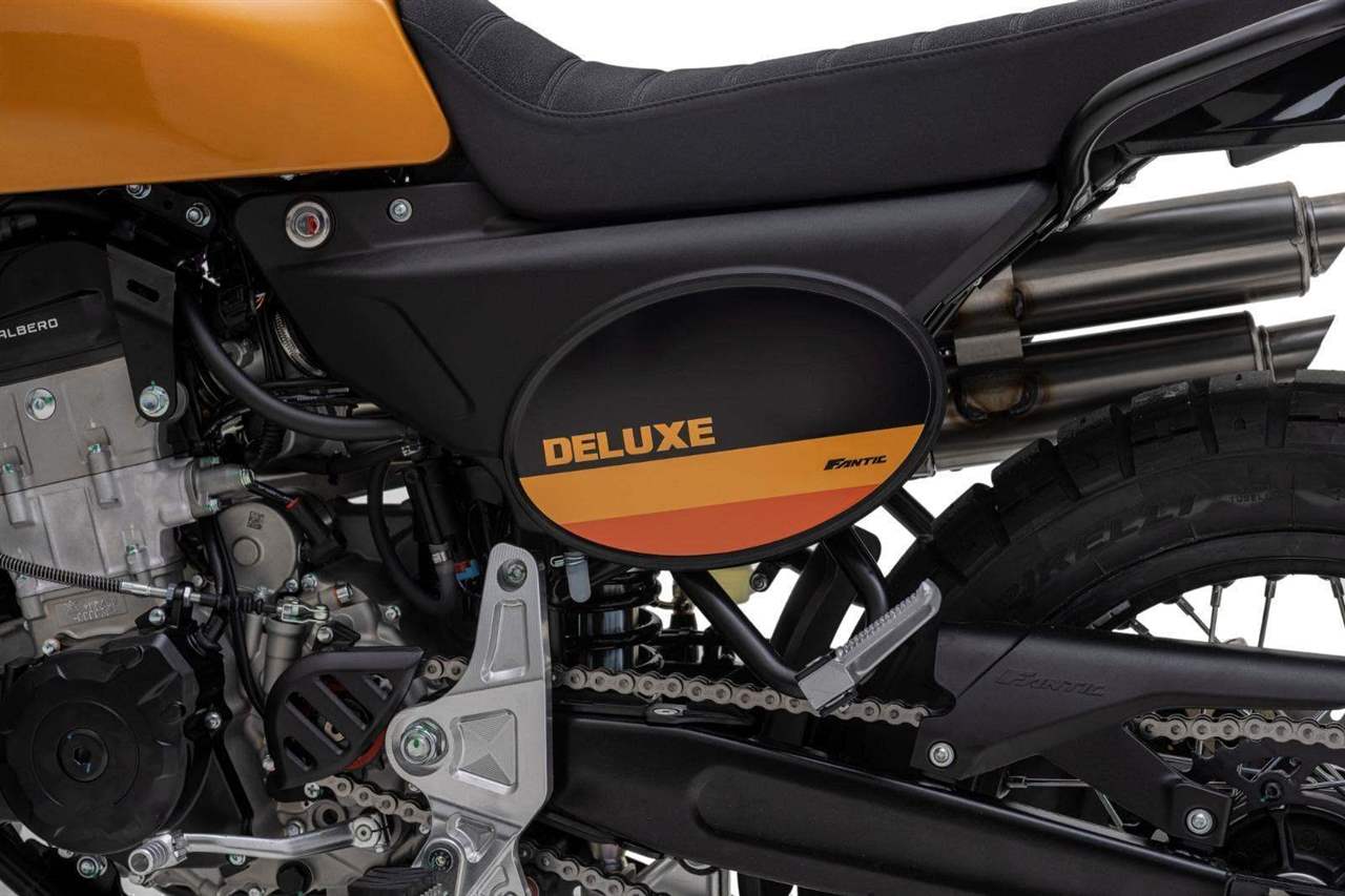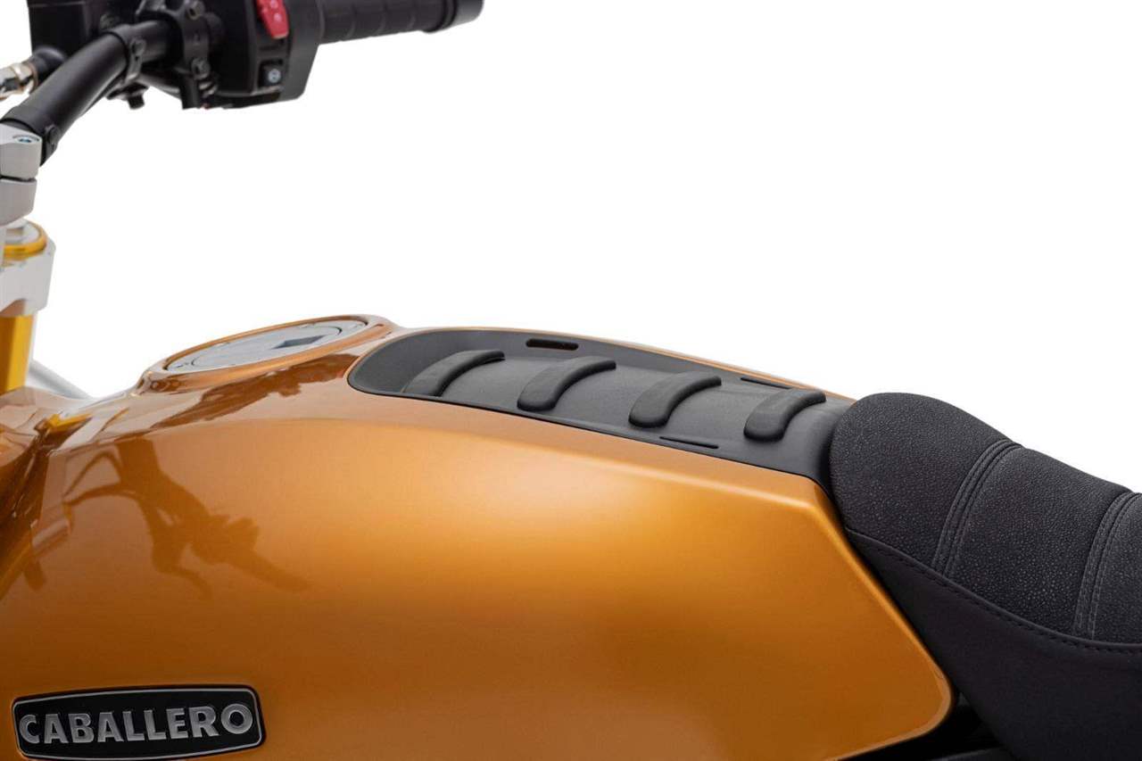 Luxusně lakovaná palivová nádrž a kontrastní boční závodní tabulka inspirovaná ikonickým Fantic Motor Caballero ze 70. let. Široká řídítka s off-roadovým tvarem, dvojitý výfukový systém od Arrow, mnoho CNC detailů, designová přední a zadní LED světla, maximum součástí zakázkově vyráběných v Itálii, to vše dělá z Caballera neodolatelnou hračku pro jezdce všech generací.