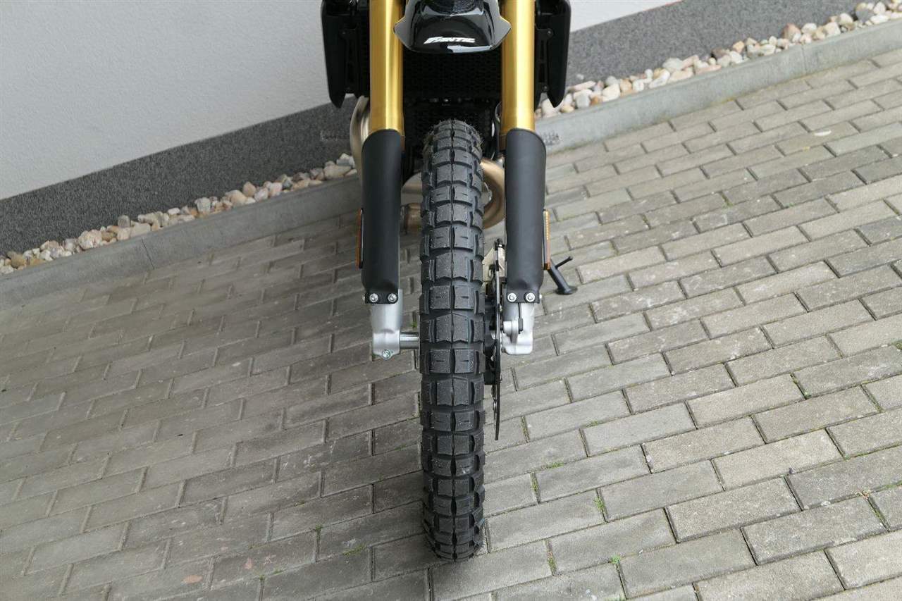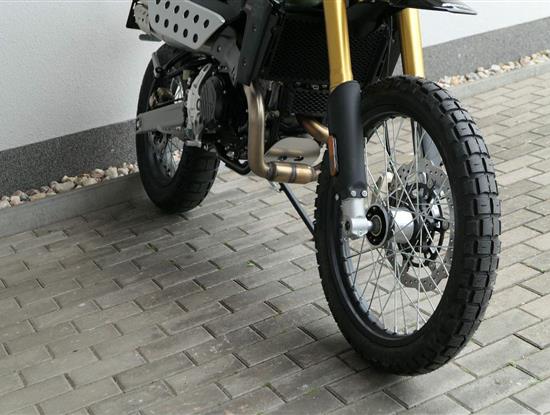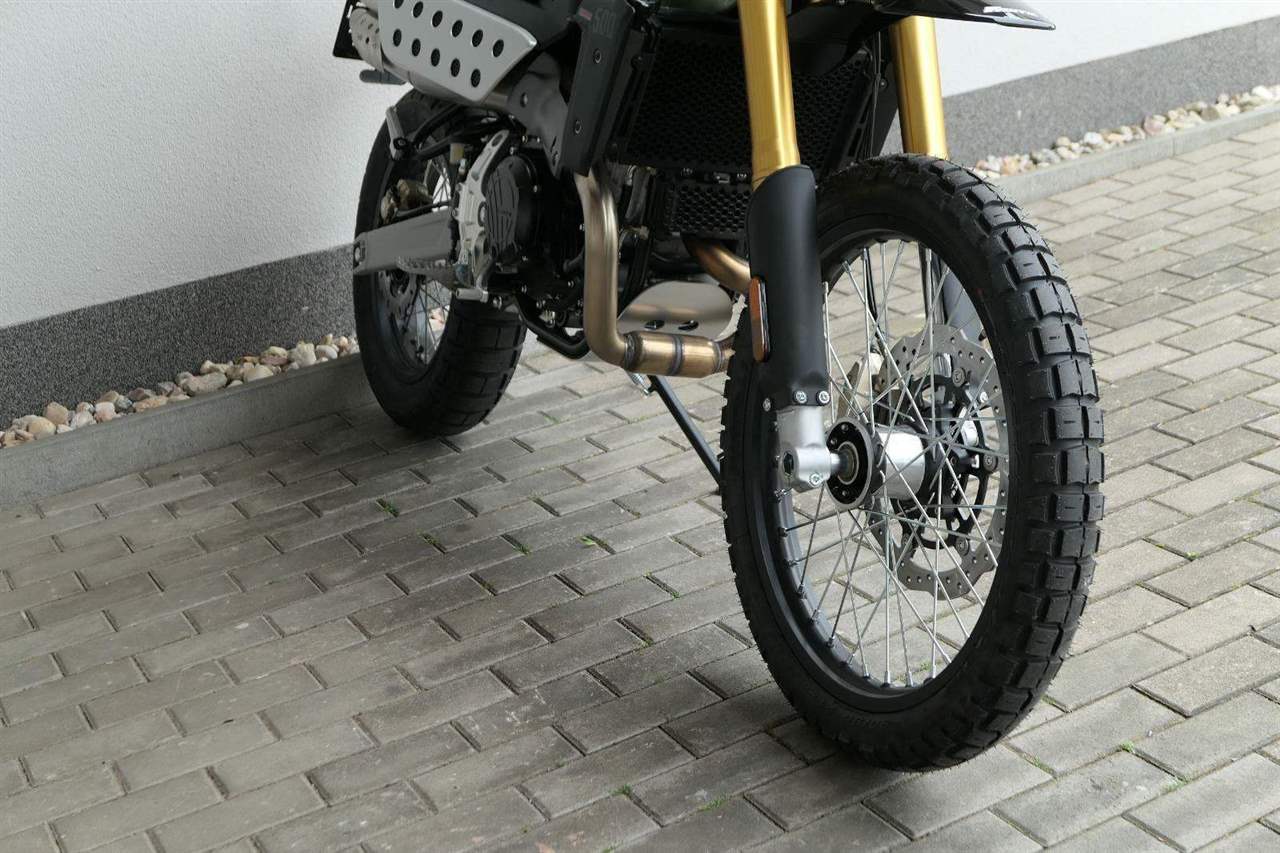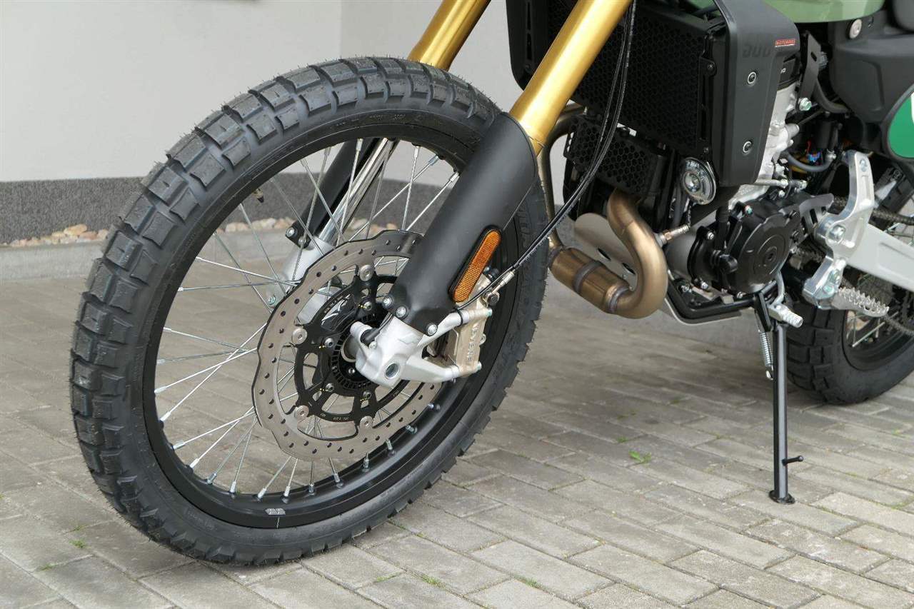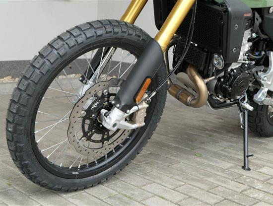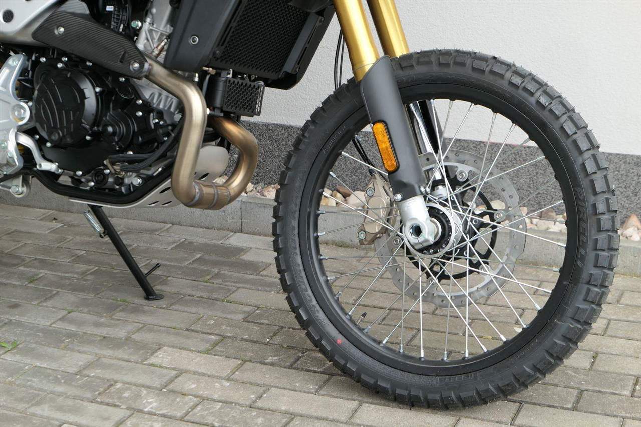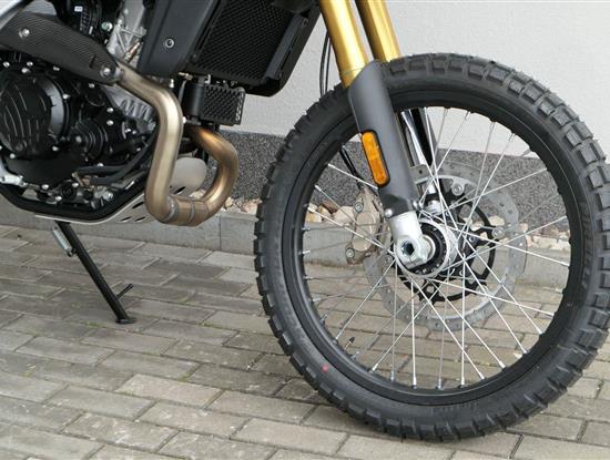 Drátová kola obutá do pneumatik Pirelli Scropion Rally  (90/90-21 vepředu a 140/80-17 vzadu), dodávají motocyklu skutečný terénní charakter. 320 mm přední plovoucí a 230 mm zadní brzdový kotouč a nastavitelné náklonové ABS s kontrolou trakce zaručují skvělou bezpečnost v každé situaci.
