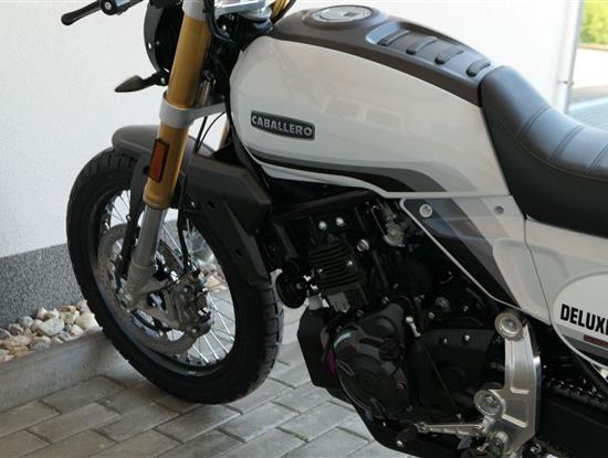 Caballero 700 spojuje výkon paralelního dvouválce Yamaha CP2, špičkovou elektroniku s náklonovým ABS – s možností deativace přímo z řídítek – a nastavitelnou kontrolou trakce, prémiový podvozek Marzocchi a brzdný systém Brembo. Díky nízké hmotnosti 175 kg, 19″ a 17″, drátovým kolům a optimalizovanému odpružení zvládá s lehkostí silnice i terén, přesně tak, jak se na autentický scrambler patří.