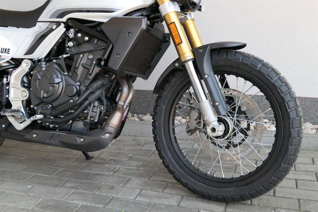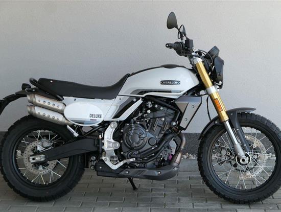 Caballero 700 spojuje výkon paralelního dvouválce Yamaha CP2, špičkovou elektroniku s náklonovým ABS – s možností deativace přímo z řídítek – a nastavitelnou kontrolou trakce, prémiový podvozek Marzocchi a brzdný systém Brembo. Díky nízké hmotnosti 175 kg, 19″ a 17″, drátovým kolům a optimalizovanému odpružení zvládá s lehkostí silnice i terén, přesně tak, jak se na autentický scrambler patří.