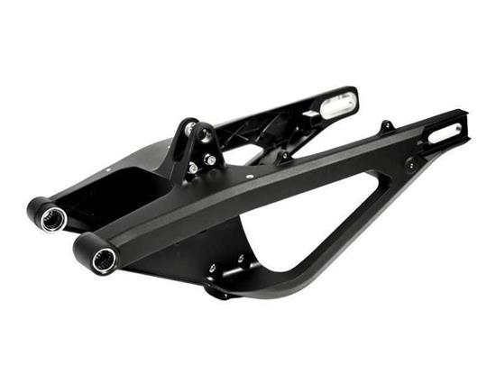 Kyvná vidlice, celá vyrobená z hliníku, je vybavena spodním výztužným ramenem, které maximalizuje strukturální tuhost, aniž by ovlivnilo celkovou hmotnost motocyklu. Tento pokročilý design zajišťuje vyšší přesnost při přenosu sil mezi zadním kolem a rámem, čímž zlepšuje trakci a stabilitu při zrychlení.