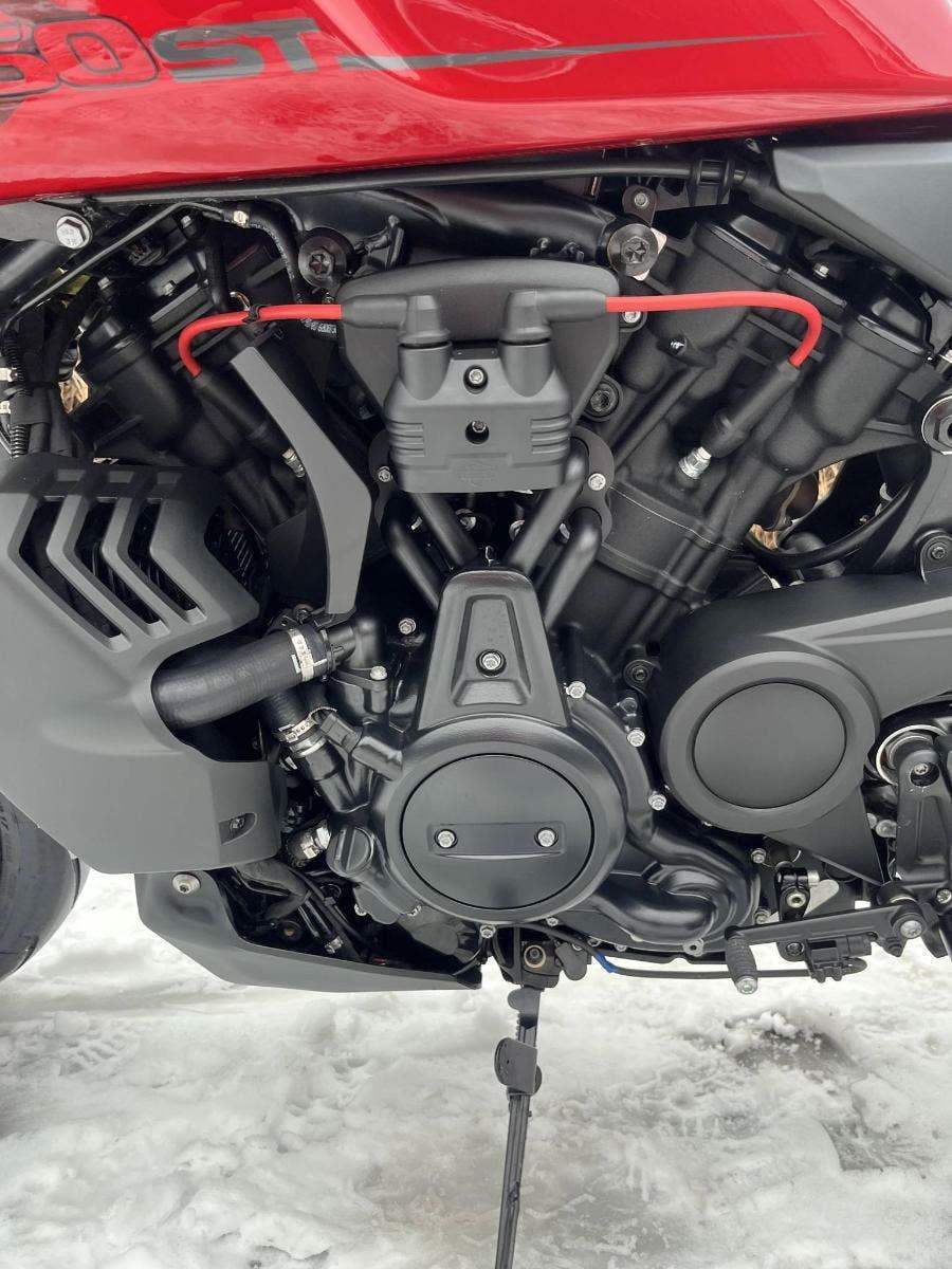 Vodou chlazený dvouválec o obsahu 1250ccm s výkonem 150 koní, 6ti stupňová převodovka.