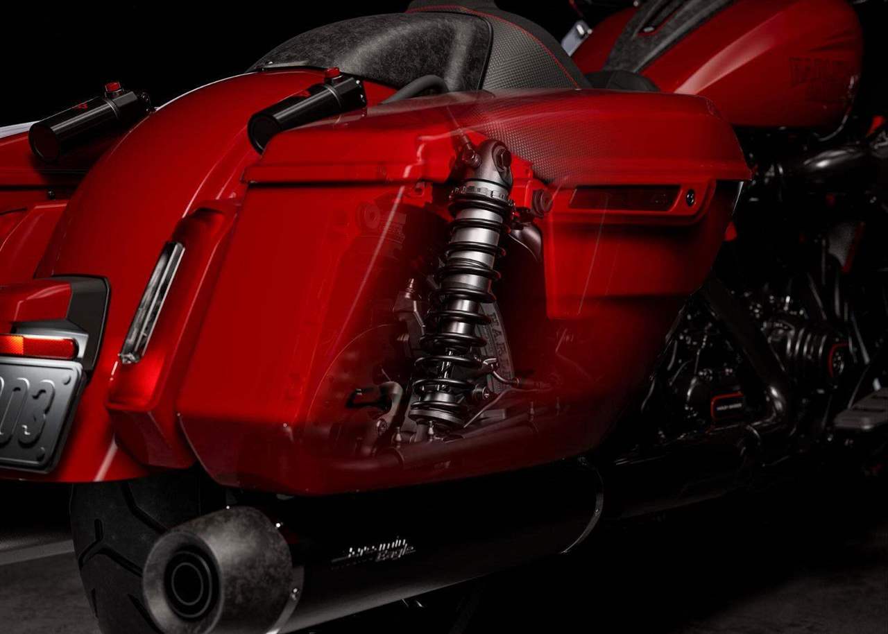 Model CVO Road Glide ST, je inspirovaný závodními motocykly ze stále populárnějšího seriálu MotoAmerica (TM) King of the Baggers (TM) (v roce 2026 součástí Moto GP). Stroj vybavený lehkými karbonovými díly, elektronickými asistenty se sportovním nastavením a motorem Milwaukee-Eight (TM) 121 High Output V-twin, který láká svým závodním výkonem a projevem. Špičkové odpružení SHOWA, titanovo karbonové koncovky výfuků Screamin´Eagle, otevřené sání, radiální brzdy.