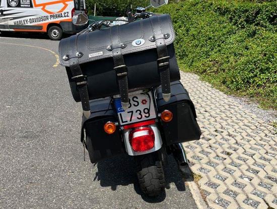 Opěrka spolujezdce s nosičem a koženou brašnou.