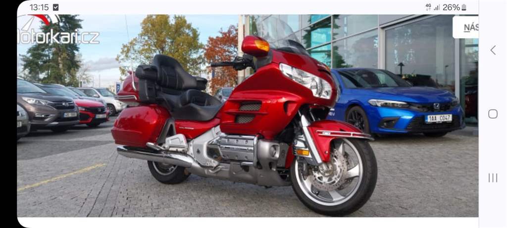 Prodám moto HONDA GOLDWING GL-1800/SC47E-87KW(118K).RV 2008, NAJETO 16500kmPOCTIVEJCH!!STK do 10.5.2028. Ani škrábaneček, důvod prodeje velká zdravotní indispozice. Motorka koupena nová v HONDA JAROV PRAHA v 2008, najeto 1000km, uvidíte v dokladech. Servisní kniha + všechny faktury ze servisu Jarov Praha, kde je od roku 2008 motorka servisována pravidelně každé dva roky. MOTORKA má najeto poctivých 16 500 km!! NOVÉ přední i zadní pneumatiky!! najeto 500 km!! Moto má vyměněné všechny náplně=brzdová+chladící kapalina+olej+filtry. Nové brzdy přední i zadní kotouče!!+ destičky. Nová baterie. Moto je připravena na sezonu!! Moto má vše původní originál=radio+navigace. Velký štít, vyhřívaná přední+zadní sedadla, vyhřívané gripy, Originál Zpátečka!! Originál Goldwing koberečky vyšívané. Motorka má nejlepší motor SC47E Vyrobený v roce 2008!! Poctivé kilometry 16 500!! Volejte jen vážní zájemci, srdcaři Goldwing. NESMLOUVÁM, VÍM CO PRODAVÁM !! Je to kráska se srdcem boxera. Cena bude zohledněna v poměru rychlost VS vzdálenost.CENA 420 000 KČ s DPH.