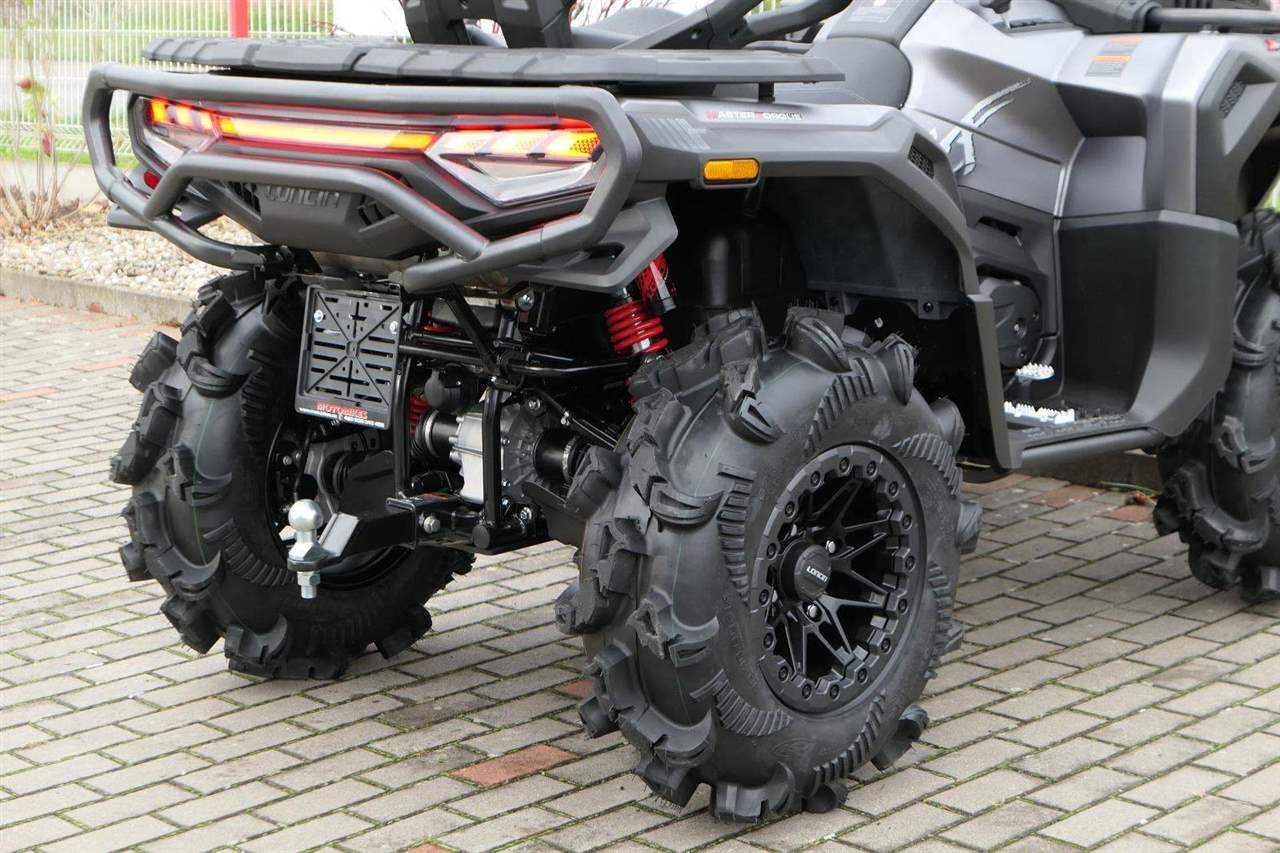 Nový LONCIN X-WOLF 1000 MUD nabízí explozivní sílu a maximální kontrolu na každém povrchu. Robustní podvozek s nezávislým zavěšením, třístupňovým elektronickým posilovačem řízení a 30" mud pneumatikami mění každý terén v dobrodružné hřiště. Odvaha, síla a nezkrotný duch – to je LONCIN X-WOLF 1000 MUD.