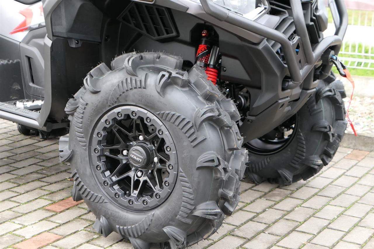Nový LONCIN X-WOLF 1000 MUD nabízí explozivní sílu a maximální kontrolu na každém povrchu. Robustní podvozek s nezávislým zavěšením, třístupňovým elektronickým posilovačem řízení a 30" mud pneumatikami mění každý terén v dobrodružné hřiště. Odvaha, síla a nezkrotný duch – to je LONCIN X-WOLF 1000 MUD.