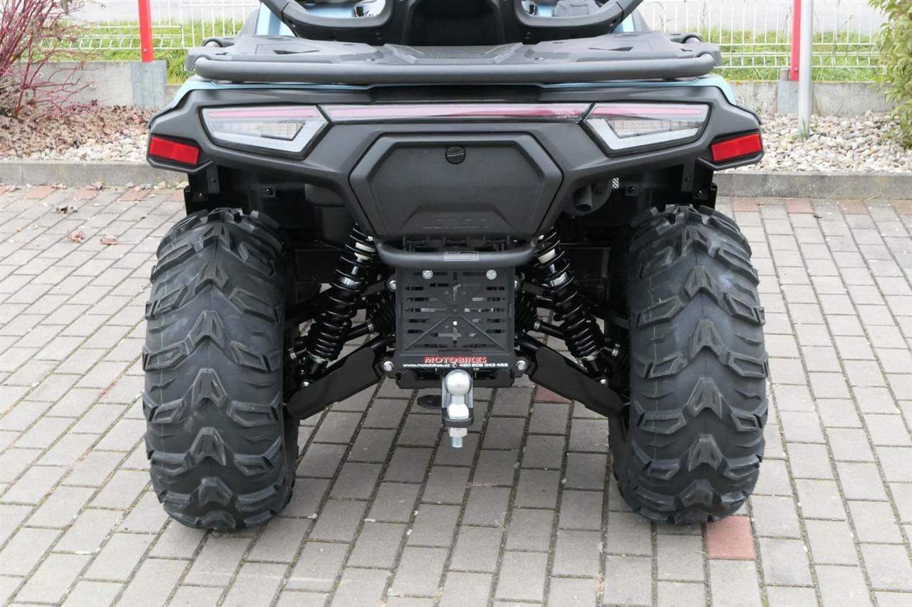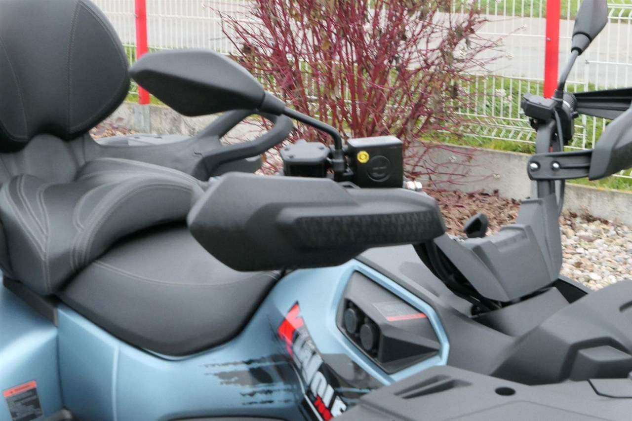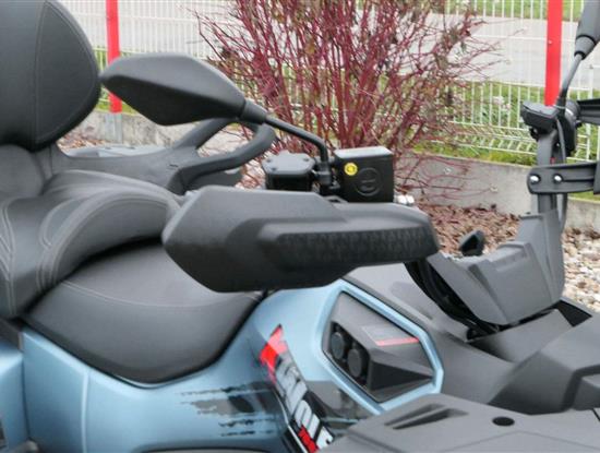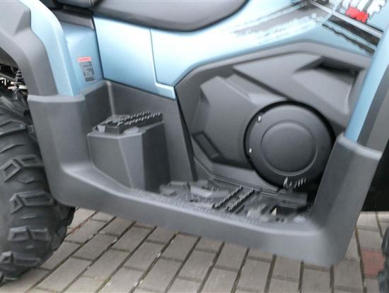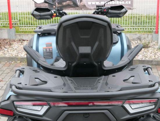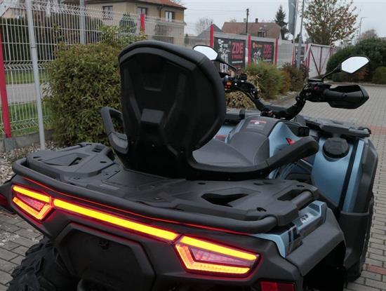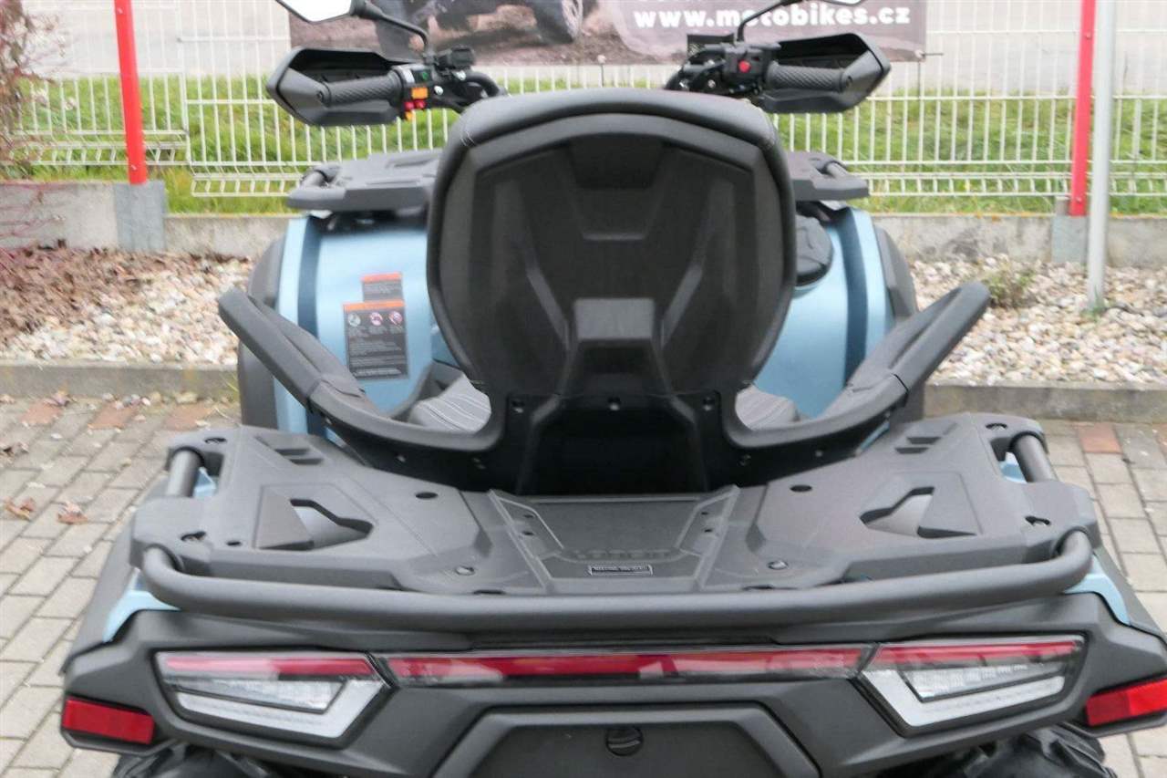 EPS (elektrický posilovač řízení), 12″ alu kola, 3x 12V zásuvka (zapalovač + 2x USB), zámek řízení integrovaný ve spínací skříňce, voděodolný kastlík v předním blatníku a v zadní části čtyřkolky, homologované tažné zařízení s el. zásuvkou na neskutečných 800 kg, silný elektrický naviják 3000 lbs, kryty rukou, ochranné lemy blatníků, přídavné sedadlo s opěradlem a madly pro spolujezdce (u prodloužené verze MAX), přepínání pohonu 2×4/4×4 + uzávěrka předního diferenciálu, přední ochranný rám s plastovým krytím, přední i zadní nosič s možností naložit na ně až 80 kg nákladu, full LED dynamické přední a zadní směrovky integrované do předních i zadních světel