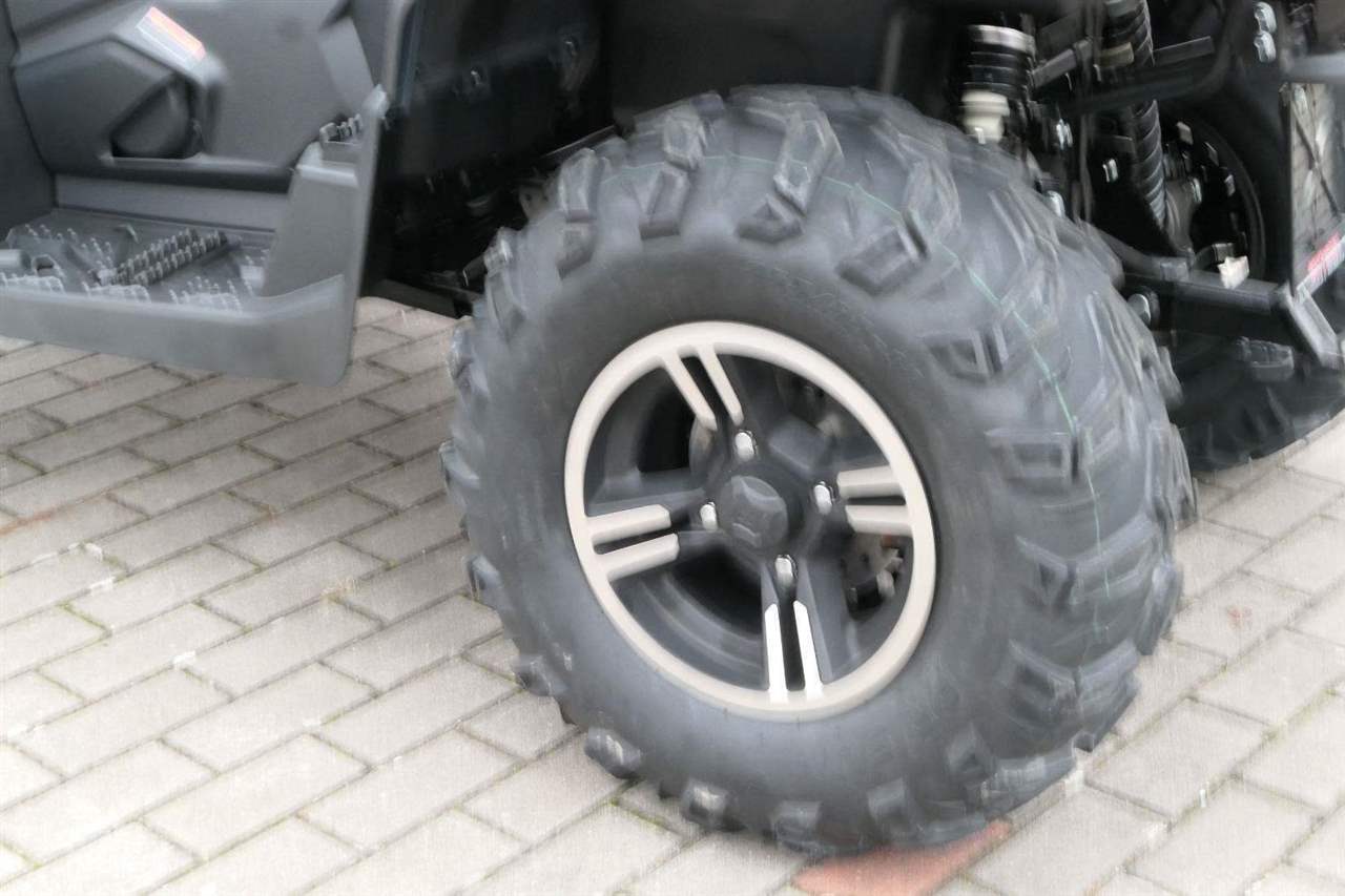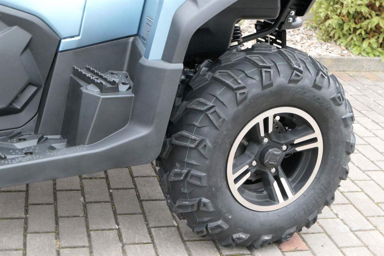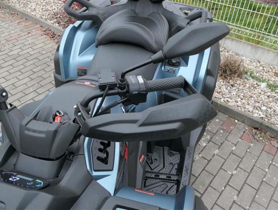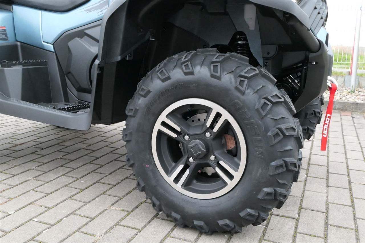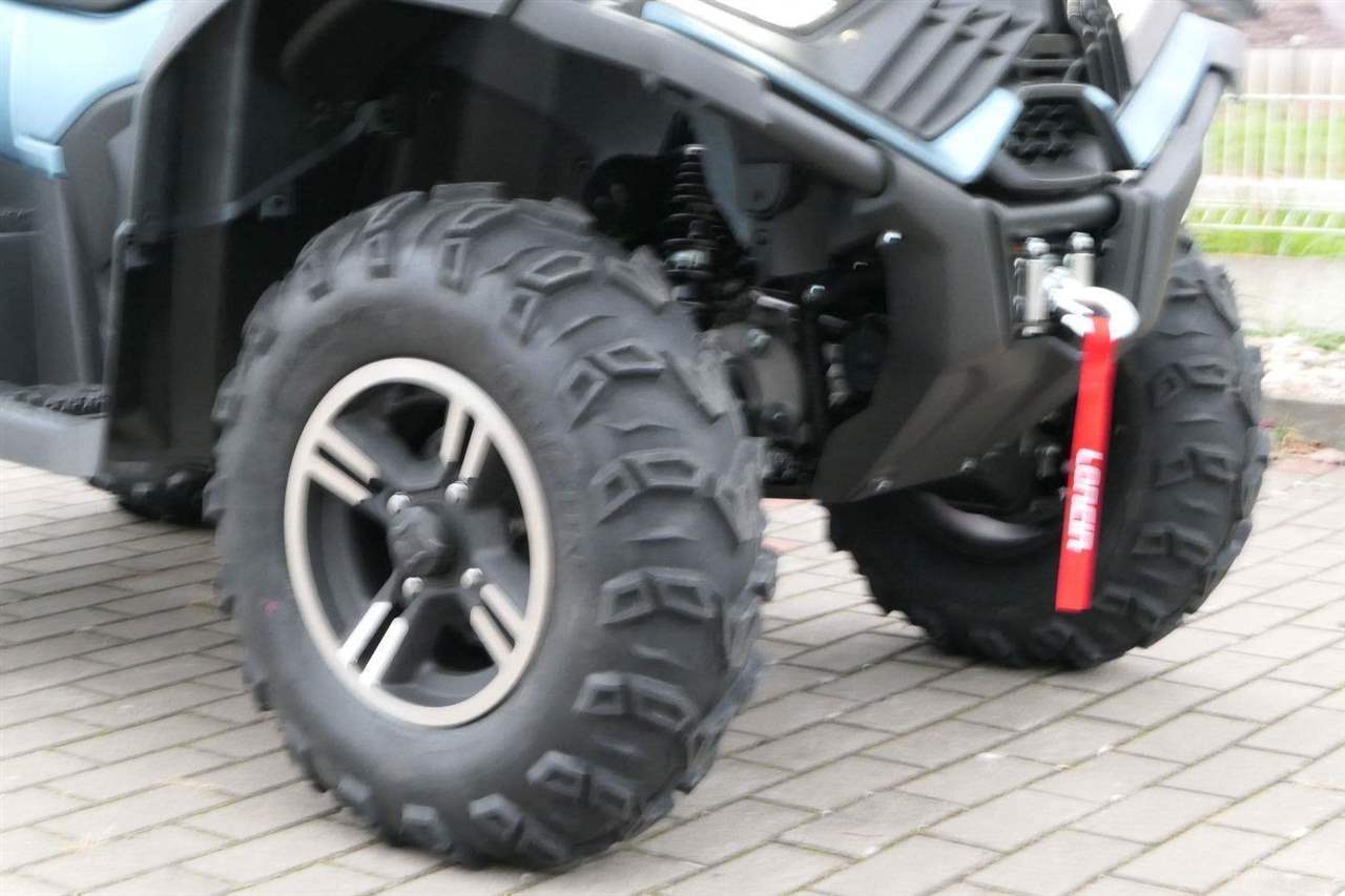 EPS (elektrický posilovač řízení), 12″ alu kola, 3x 12V zásuvka (zapalovač + 2x USB), zámek řízení integrovaný ve spínací skříňce, voděodolný kastlík v předním blatníku a v zadní části čtyřkolky, homologované tažné zařízení s el. zásuvkou na neskutečných 800 kg, silný elektrický naviják 3000 lbs, kryty rukou, ochranné lemy blatníků, přídavné sedadlo s opěradlem a madly pro spolujezdce (u prodloužené verze MAX), přepínání pohonu 2×4/4×4 + uzávěrka předního diferenciálu, přední ochranný rám s plastovým krytím, přední i zadní nosič s možností naložit na ně až 80 kg nákladu, full LED dynamické přední a zadní směrovky integrované do předních i zadních světel