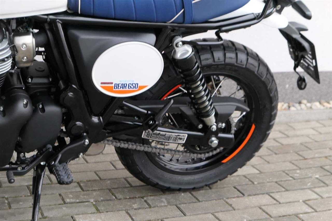 Silniční scramler s duší šedesátých let. Bear 650 ztělesňuje ducha šestnáctiletého nováčka, který se v roce 1960 seřadil vedle stovek spálených nadějí, všichni hladoví po vítězství v nejdivočejším závodě, jaký kdy kalifornská poušť znala - Big Bear Run.