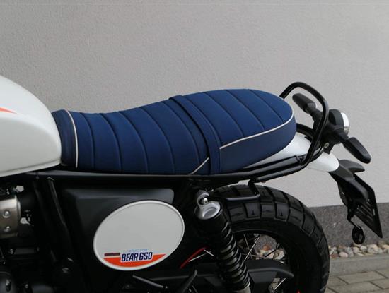 Silniční scramler s duší šedesátých let. Bear 650 ztělesňuje ducha šestnáctiletého nováčka, který se v roce 1960 seřadil vedle stovek spálených nadějí, všichni hladoví po vítězství v nejdivočejším závodě, jaký kdy kalifornská poušť znala - Big Bear Run.