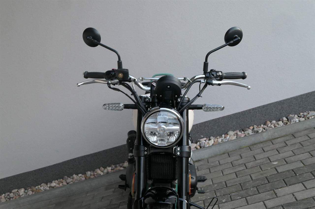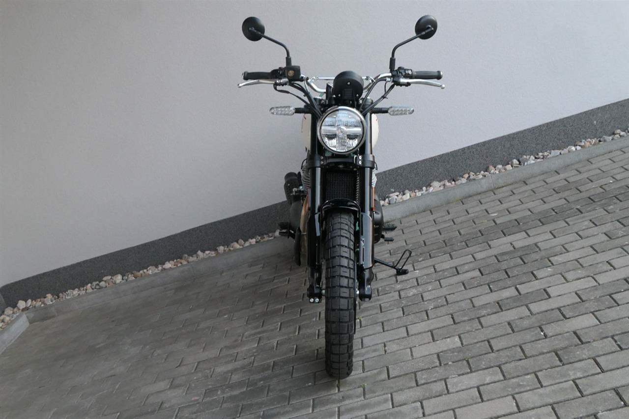 Silniční scramler s duší šedesátých let. Bear 650 ztělesňuje ducha šestnáctiletého nováčka, který se v roce 1960 seřadil vedle stovek spálených nadějí, všichni hladoví po vítězství v nejdivočejším závodě, jaký kdy kalifornská poušť znala - Big Bear Run.