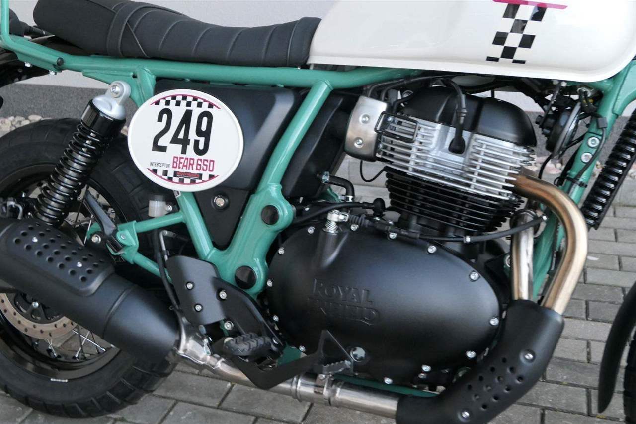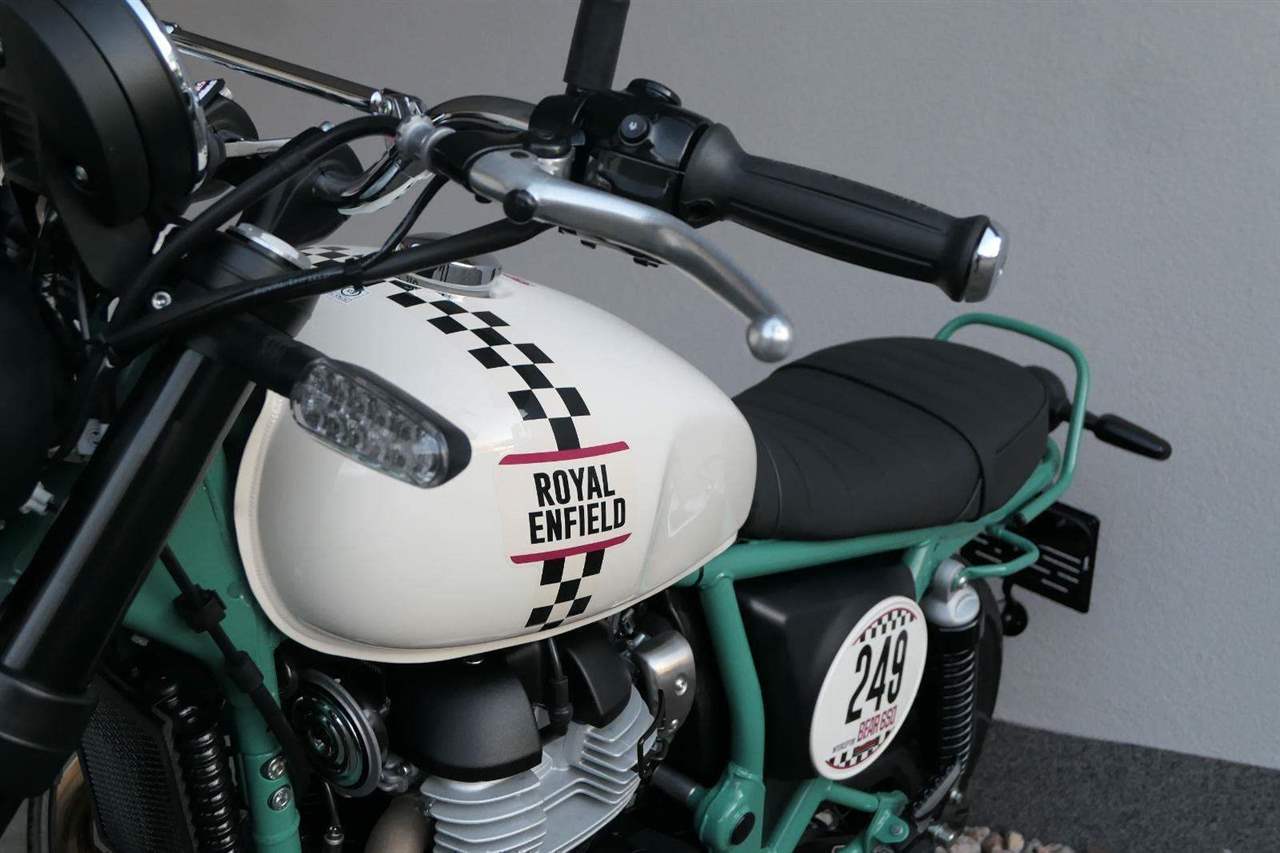 Napájení díky emocím a pohon zajišťuje ověřený paralelní dvouválec Royal Enfield o objemu 650 ccm. Je chráněn pláštěm ve vysoce odolné, prémiové černé úpravě, čímž získává robustní a účelné vzezření a je očividně dokonalým scramblerem.