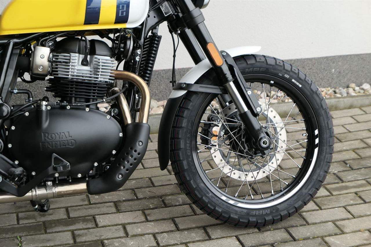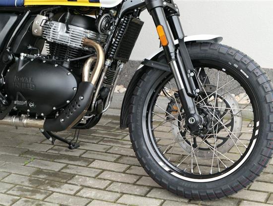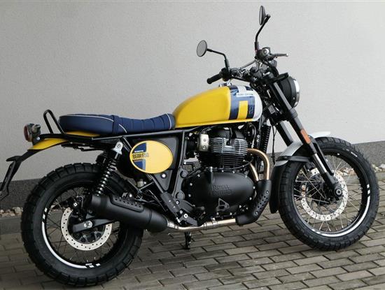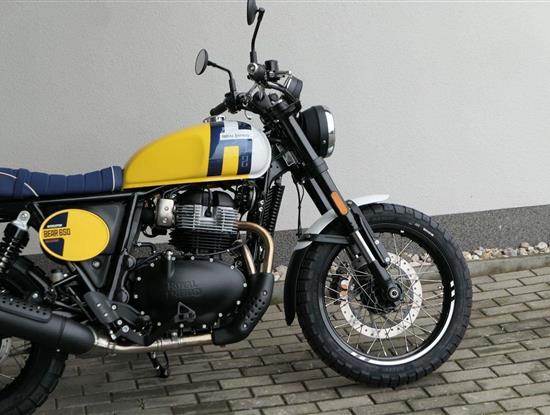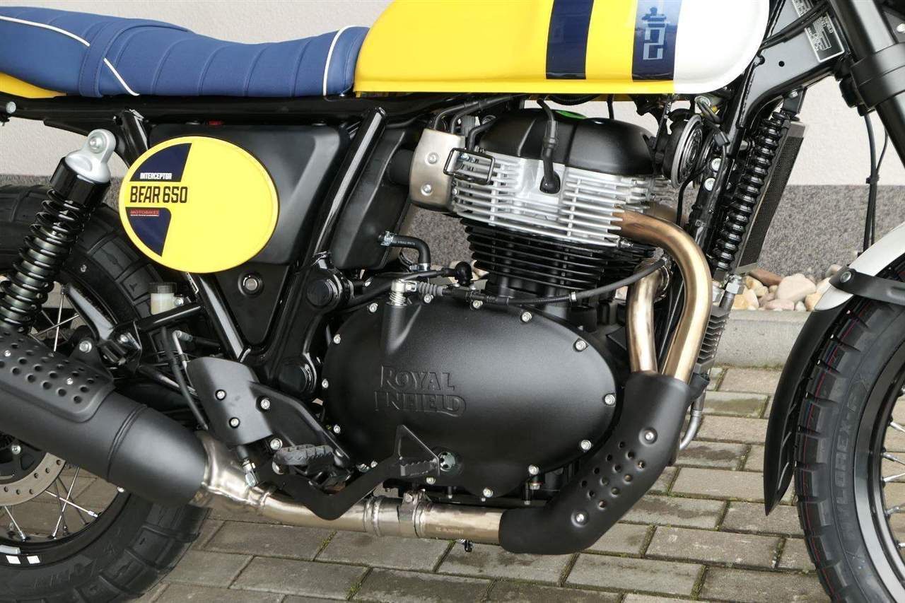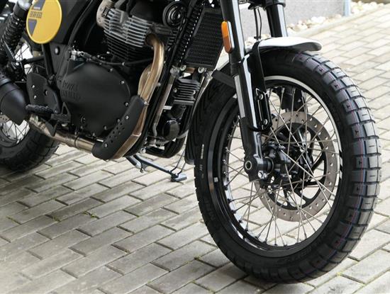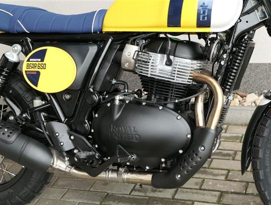 Napájení díky emocím a pohon zajišťuje ověřený paralelní dvouválec Royal Enfield o objemu 650 ccm. Je chráněn pláštěm ve vysoce odolné, prémiové černé úpravě, čímž získává robustní a účelné vzezření a je očividně dokonalým scramblerem.