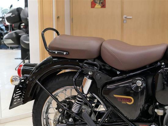 Ústředním prvkem nového Classic 350 je zcela nové srdce, které bije do jedinečného rytmu Royal Enfield. Ve spojení s novým rámem se dvěma spodními trubkami, který jezdí pevně a věrně, solidní a spolehlivou kvalitou konstrukce, je Classic vaším spojencem, ať už je váš cíl kdekoliv. Vzpřímená jízdní poloha dává jezdci Classicu vynikající vzhled na silnici, zatímco brzdy s větším průměrem zvyšují jeho brzdnou sílu. Ale silnější neznamená jen schopný a odolný, Classic je obdařen také pohodlím, s vylepšeným širším sedlem, které zpříjemňuje jízdu.
