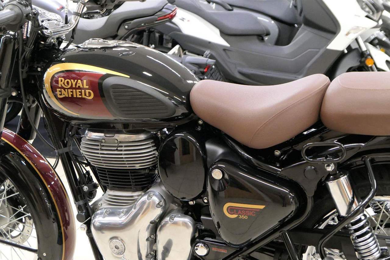Zcela nový Classic 350 i nadále ztělesňuje tradice a řemeslo minulosti, protože je znovuzrozen na nové platformě J. Classic 350 z roku 2021, inspirovaný poválečným modelem G2, který se poprvé zrodil v roce 2008, nadále oslavuje nadčasovou estetiku prostřednictvím zaoblených blatníků a palivové nádrže ve tvaru kapky, charakteristického krytého světlometu, linií víka klikové skříně, jedinečných barev laku, charakteristického zvuku, který vyrazí z výfuku – to vše harmonizuje jako jeden celek s radostí z mistrovského díla, kterým je nadčasový Royal Enfield Classic. Elegantní, s lesklým nádechem, který zdobí výjimečnou konstrukci, vyzařuje bezkonkurenční krásu a kvalitu, která vydrží na věky.