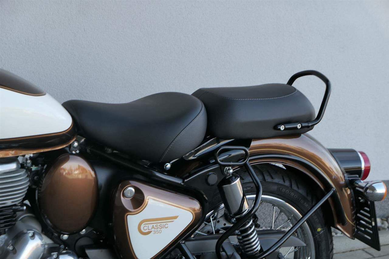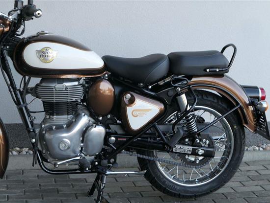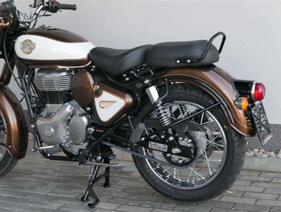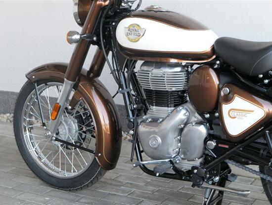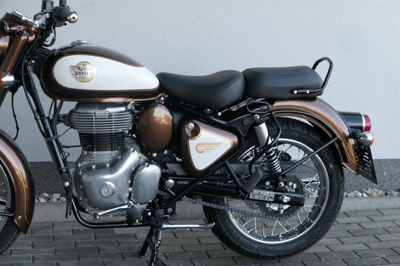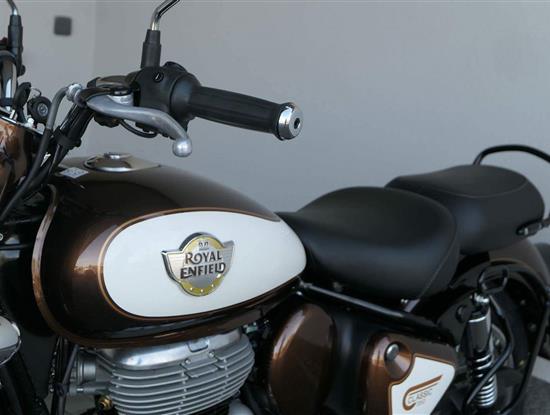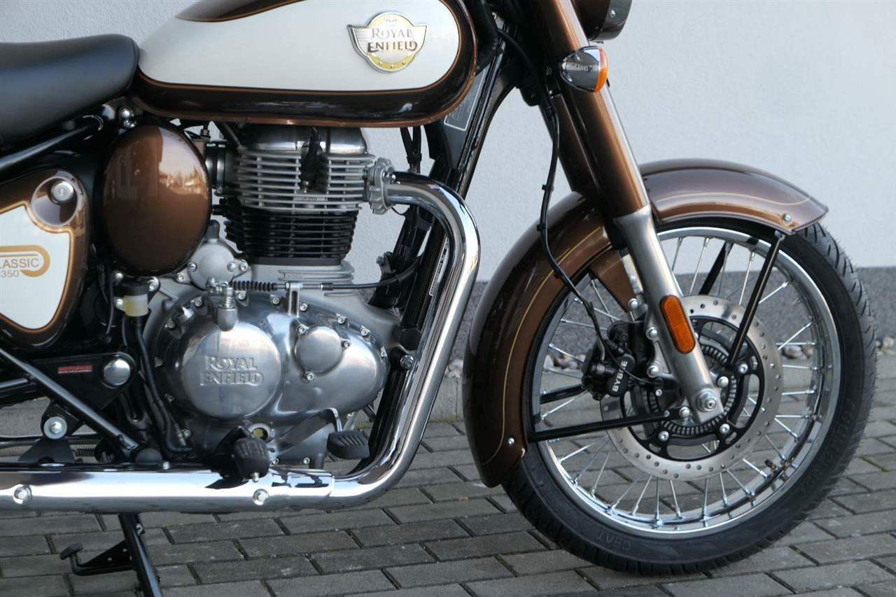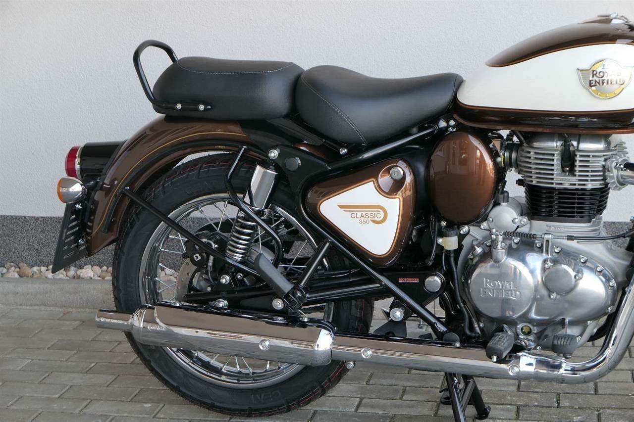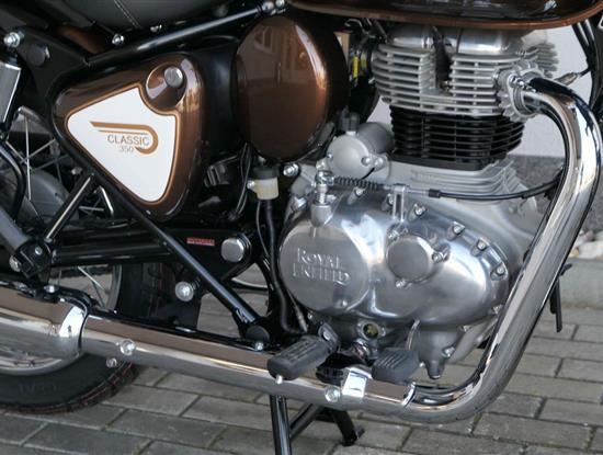 Ústředním prvkem nového Classic 350 je zcela nové srdce, které bije do jedinečného rytmu Royal Enfield. Ve spojení s novým rámem se dvěma spodními trubkami, který jezdí pevně a věrně, solidní a spolehlivou kvalitou konstrukce, je Classic vaším spojencem, ať už je váš cíl kdekoliv. Vzpřímená jízdní poloha dává jezdci Classicu vynikající vzhled na silnici, zatímco brzdy s větším průměrem zvyšují jeho brzdnou sílu. Ale silnější neznamená jen schopný a odolný, Classic je obdařen také pohodlím, s vylepšeným širším sedlem, které zpříjemňuje jízdu.
