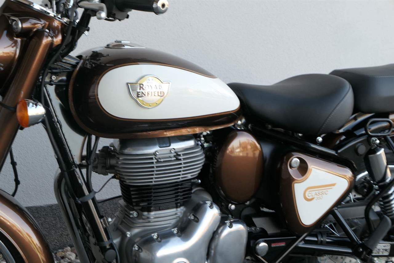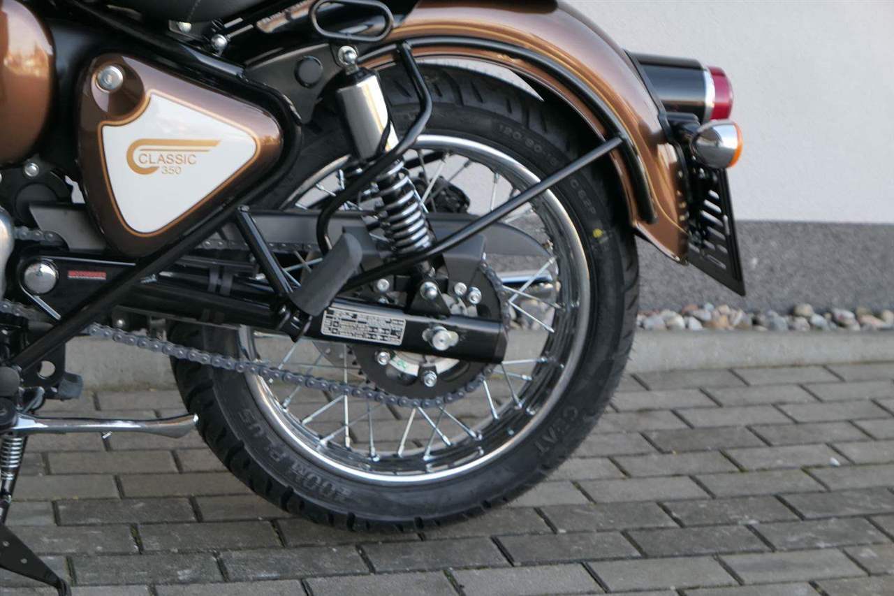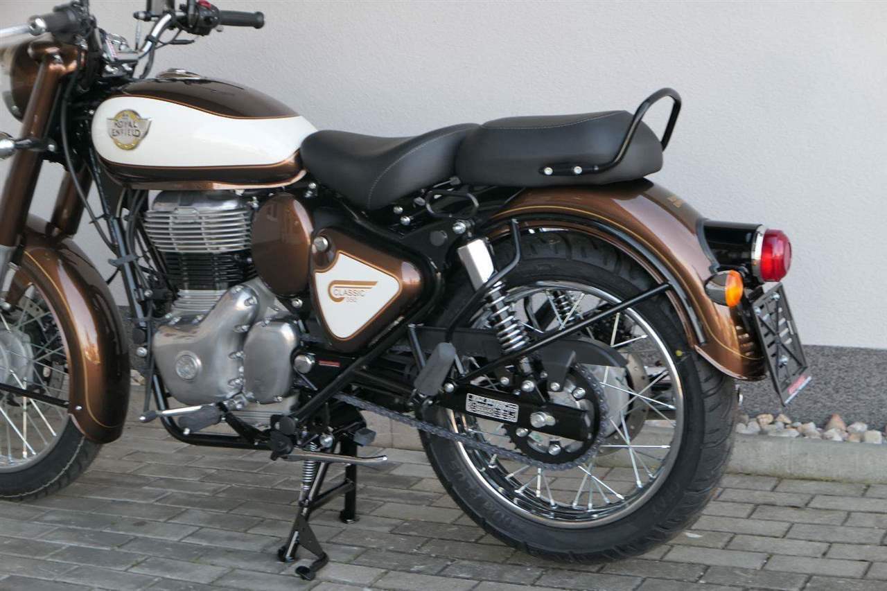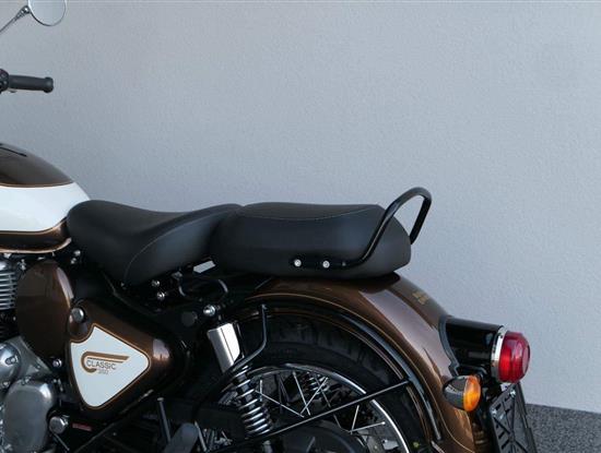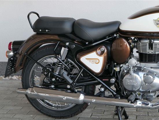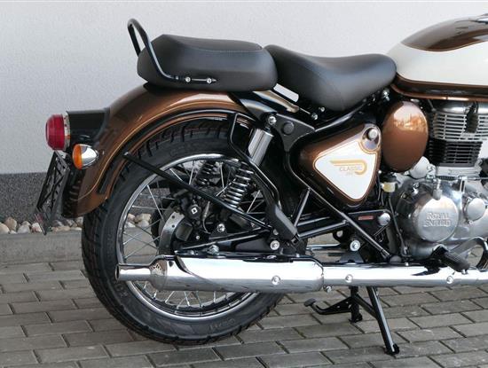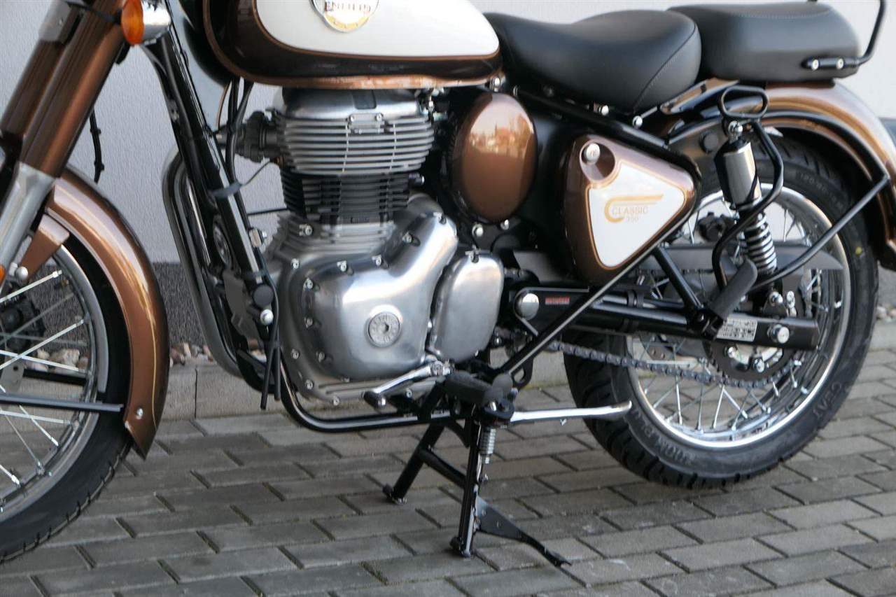 Ústředním prvkem nového Classic 350 je zcela nové srdce, které bije do jedinečného rytmu Royal Enfield. Ve spojení s novým rámem se dvěma spodními trubkami, který jezdí pevně a věrně, solidní a spolehlivou kvalitou konstrukce, je Classic vaším spojencem, ať už je váš cíl kdekoliv. Vzpřímená jízdní poloha dává jezdci Classicu vynikající vzhled na silnici, zatímco brzdy s větším průměrem zvyšují jeho brzdnou sílu. Ale silnější neznamená jen schopný a odolný, Classic je obdařen také pohodlím, s vylepšeným širším sedlem, které zpříjemňuje jízdu.