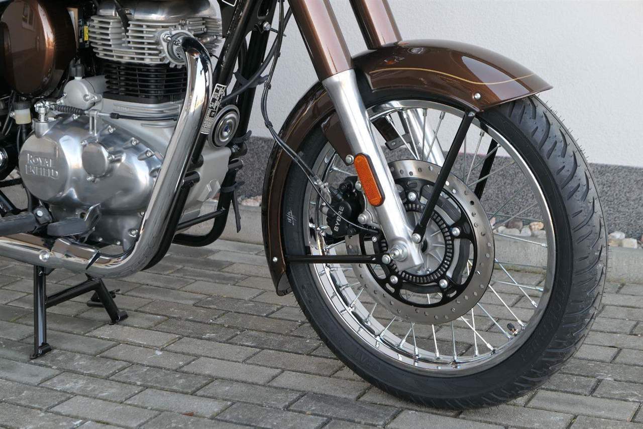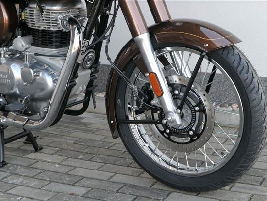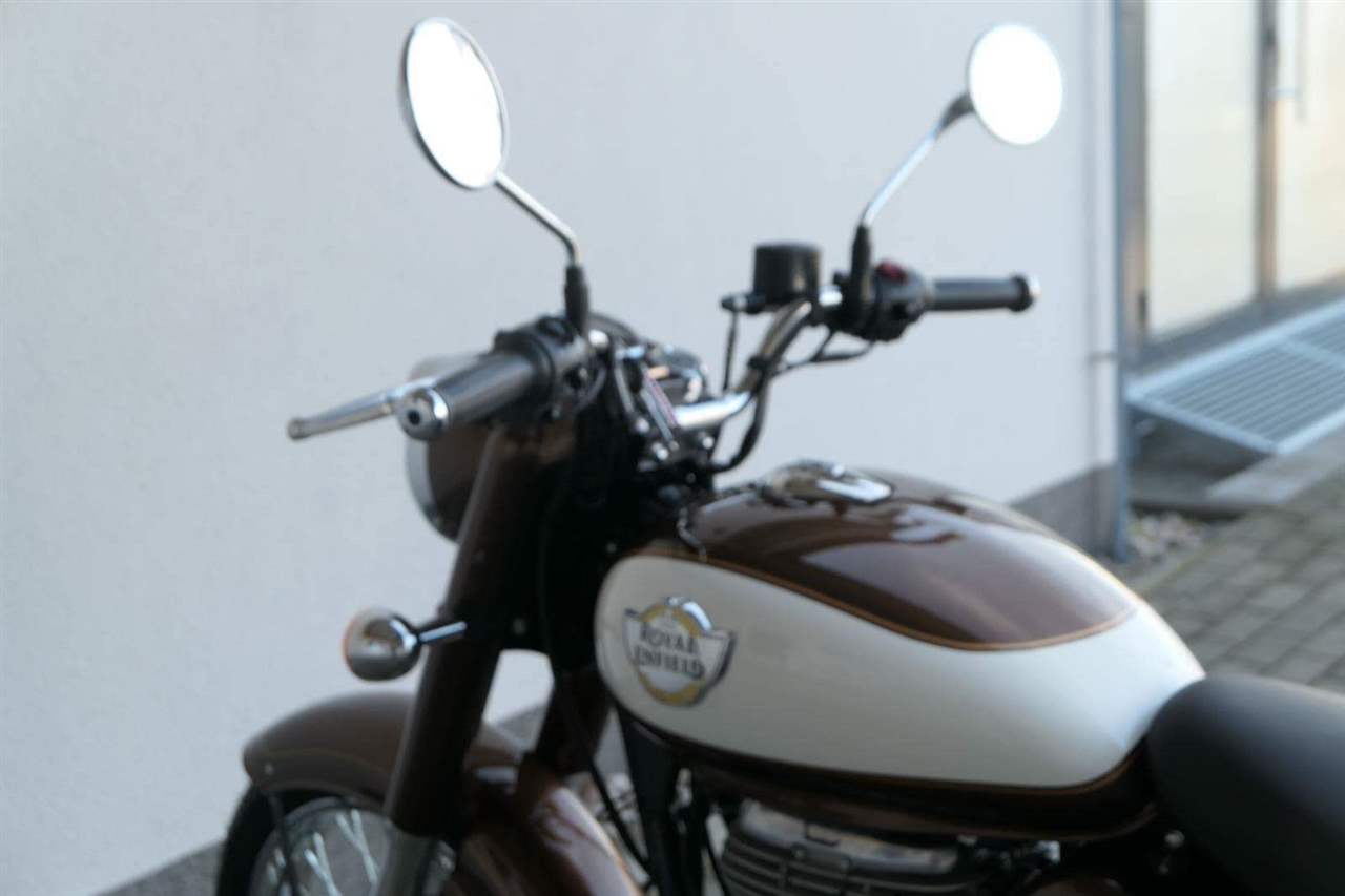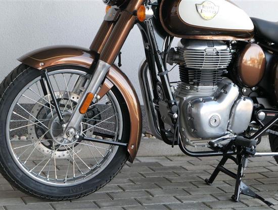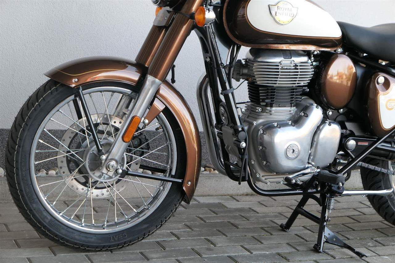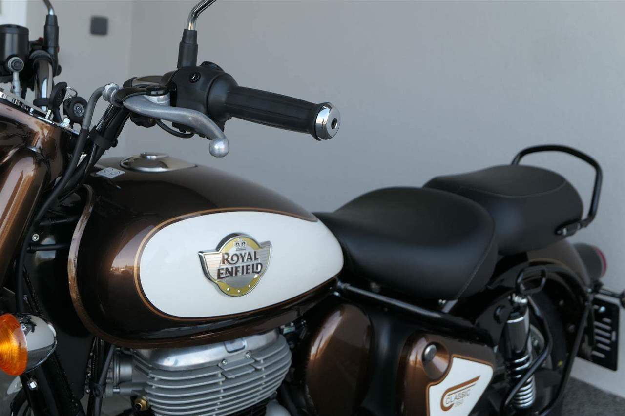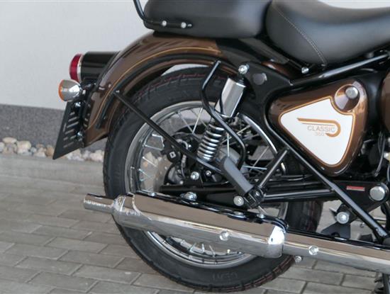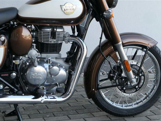 Ústředním prvkem nového Classic 350 je zcela nové srdce, které bije do jedinečného rytmu Royal Enfield. Ve spojení s novým rámem se dvěma spodními trubkami, který jezdí pevně a věrně, solidní a spolehlivou kvalitou konstrukce, je Classic vaším spojencem, ať už je váš cíl kdekoliv. Vzpřímená jízdní poloha dává jezdci Classicu vynikající vzhled na silnici, zatímco brzdy s větším průměrem zvyšují jeho brzdnou sílu. Ale silnější neznamená jen schopný a odolný, Classic je obdařen také pohodlím, s vylepšeným širším sedlem, které zpříjemňuje jízdu.