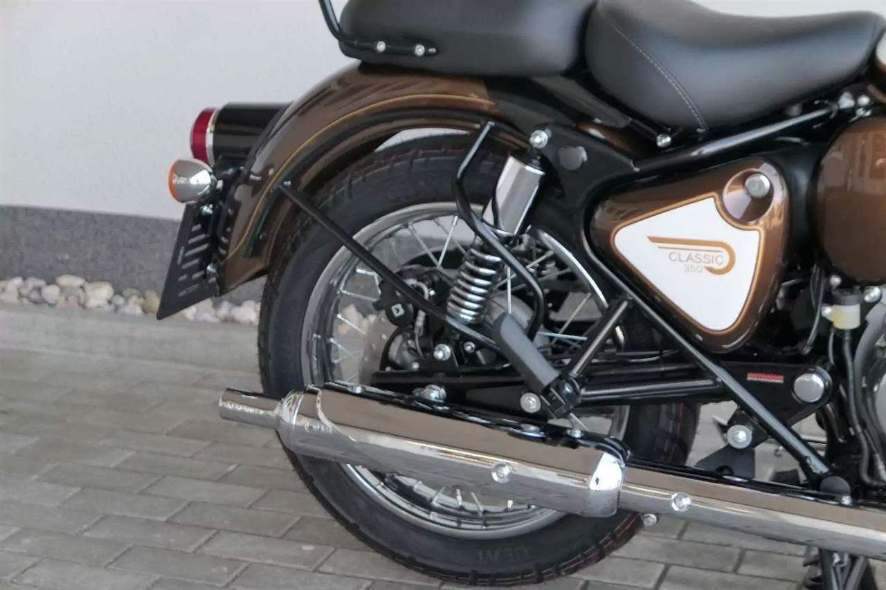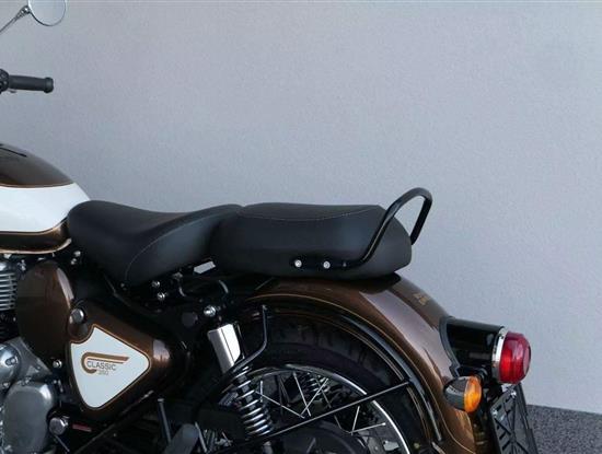 Ústředním prvkem nového Classic 350 je zcela nové srdce, které bije do jedinečného rytmu Royal Enfield. Ve spojení s novým rámem se dvěma spodními trubkami, který jezdí pevně a věrně, solidní a spolehlivou kvalitou konstrukce, je Classic vaším spojencem, ať už je váš cíl kdekoliv. Vzpřímená jízdní poloha dává jezdci Classicu vynikající vzhled na silnici, zatímco brzdy s větším průměrem zvyšují jeho brzdnou sílu. Ale silnější neznamená jen schopný a odolný, Classic je obdařen také pohodlím, s vylepšeným širším sedlem, které zpříjemňuje jízdu.