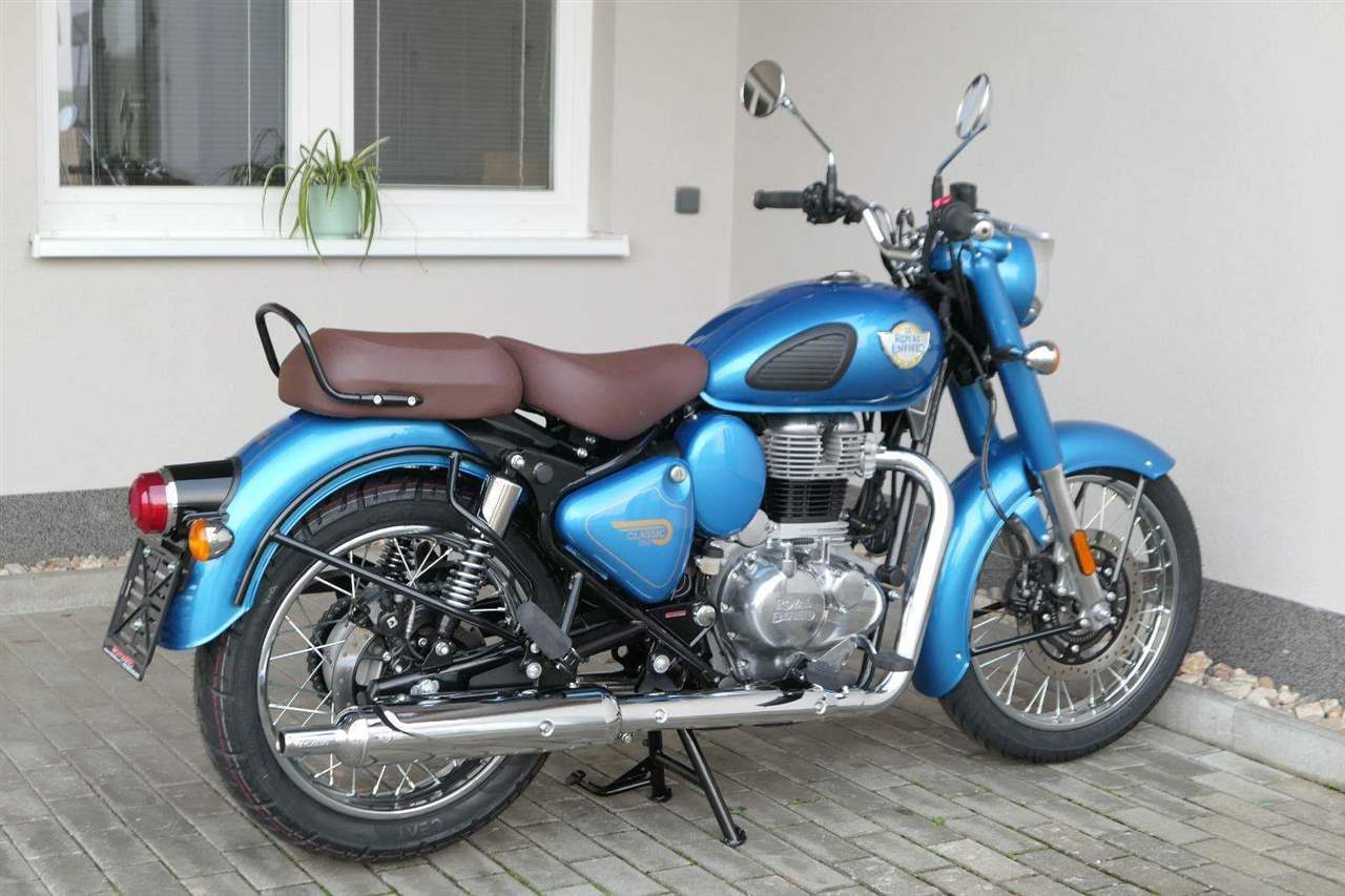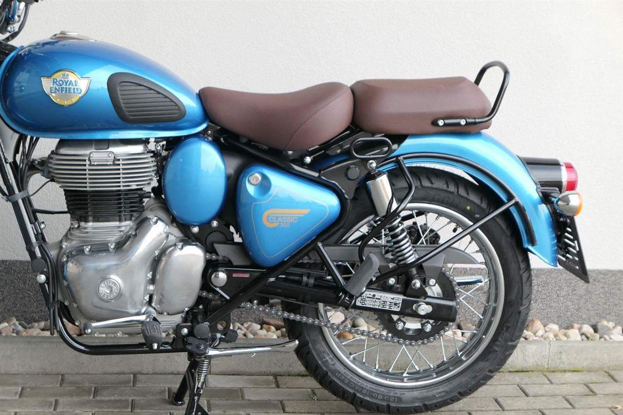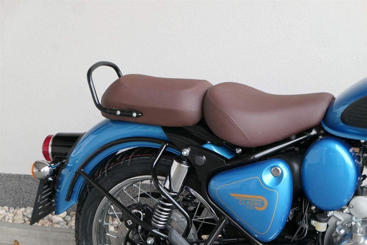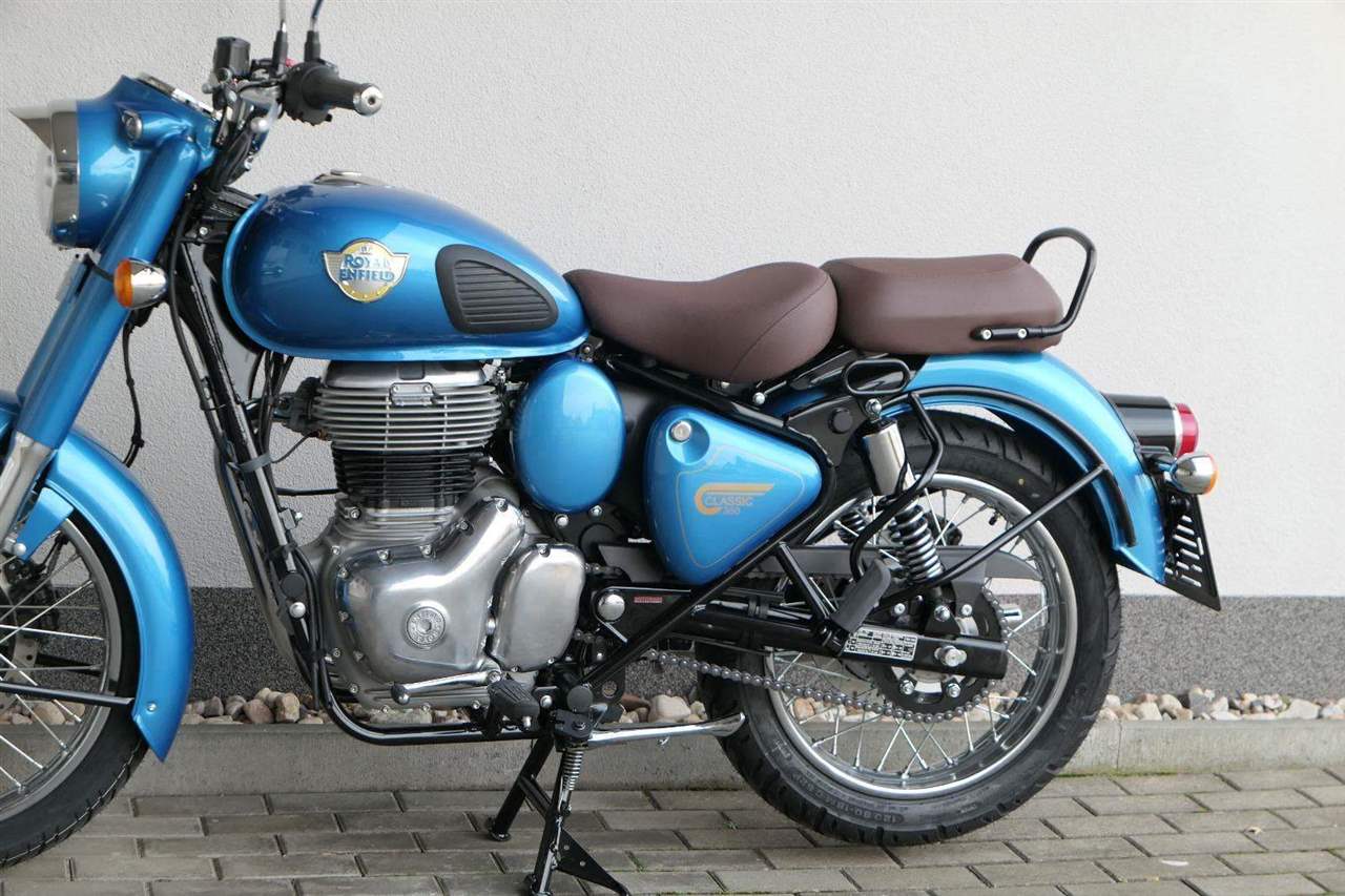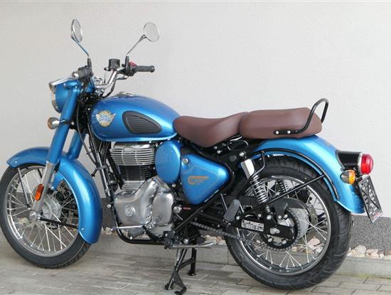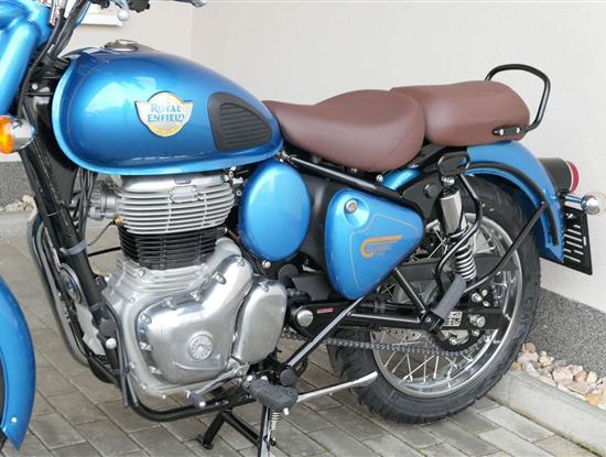 Ústředním prvkem nového Classic 350 je zcela nové srdce, které bije do jedinečného rytmu Royal Enfield. Ve spojení s novým rámem se dvěma spodními trubkami, který jezdí pevně a věrně, solidní a spolehlivou kvalitou konstrukce, je Classic vaším spojencem, ať už je váš cíl kdekoliv. Vzpřímená jízdní poloha dává jezdci Classicu vynikající vzhled na silnici, zatímco brzdy s větším průměrem zvyšují jeho brzdnou sílu. Ale silnější neznamená jen schopný a odolný, Classic je obdařen také pohodlím, s vylepšeným širším sedlem, které zpříjemňuje jízdu.