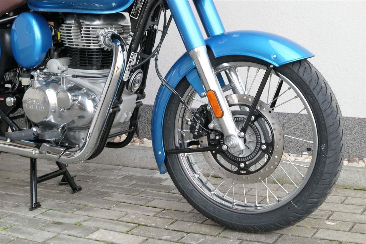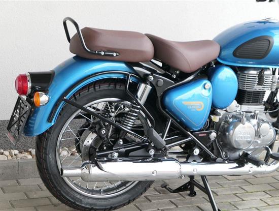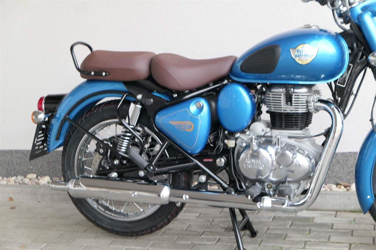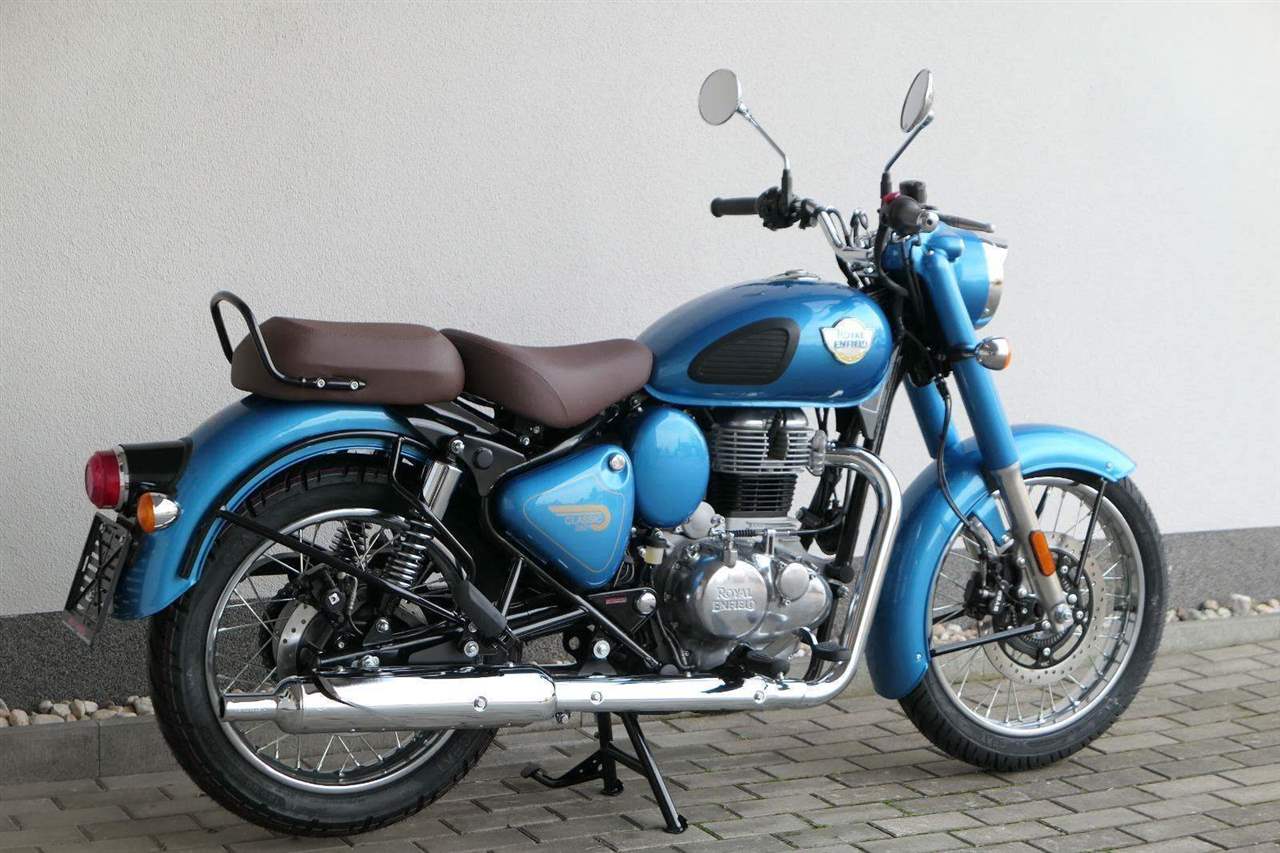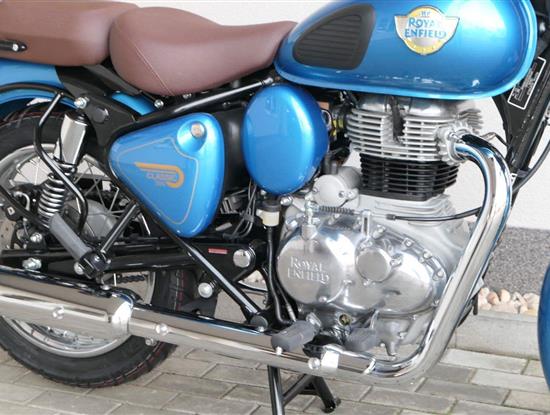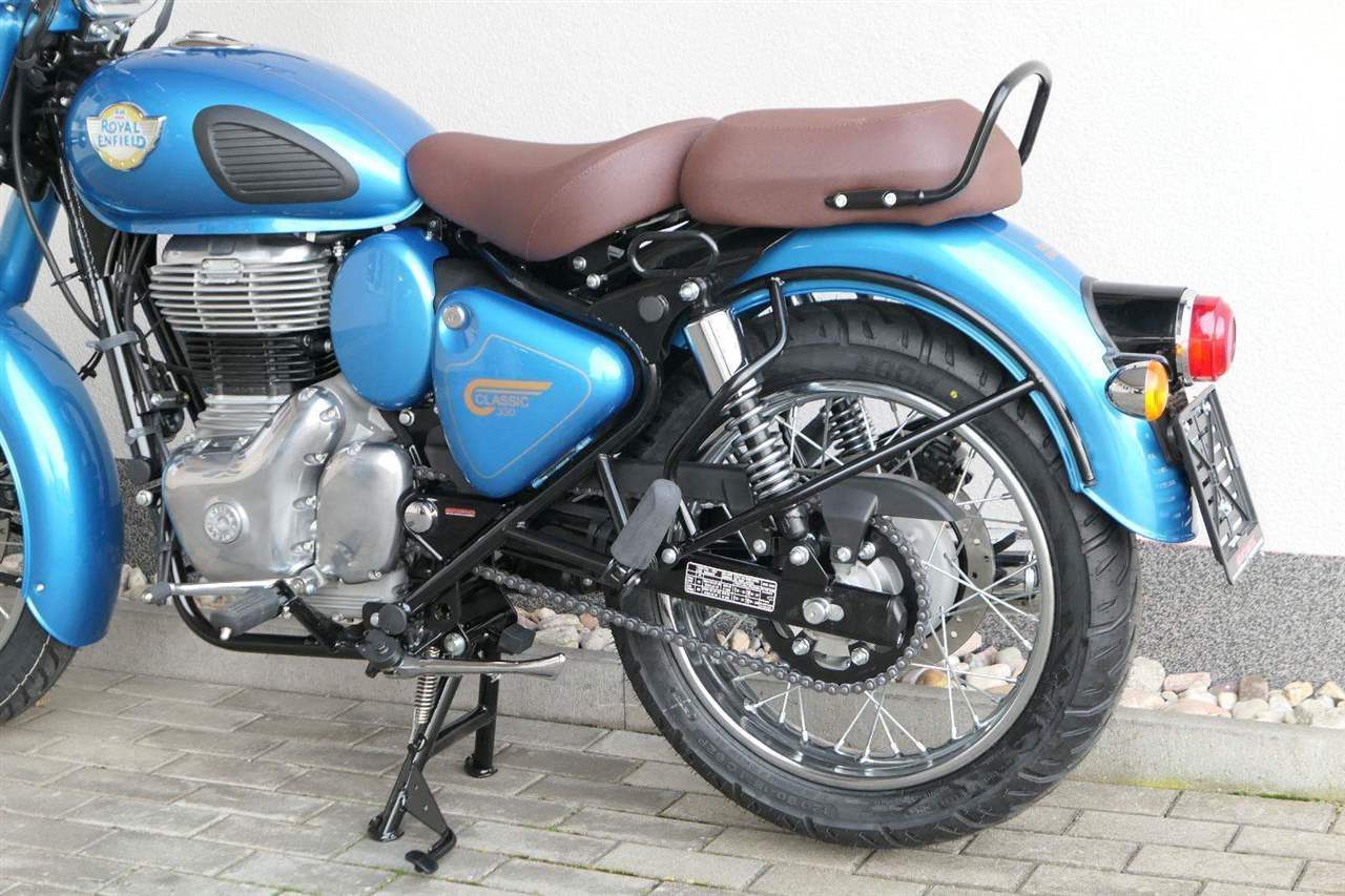 Ústředním prvkem nového Classic 350 je zcela nové srdce, které bije do jedinečného rytmu Royal Enfield. Ve spojení s novým rámem se dvěma spodními trubkami, který jezdí pevně a věrně, solidní a spolehlivou kvalitou konstrukce, je Classic vaším spojencem, ať už je váš cíl kdekoliv. Vzpřímená jízdní poloha dává jezdci Classicu vynikající vzhled na silnici, zatímco brzdy s větším průměrem zvyšují jeho brzdnou sílu. Ale silnější neznamená jen schopný a odolný, Classic je obdařen také pohodlím, s vylepšeným širším sedlem, které zpříjemňuje jízdu.