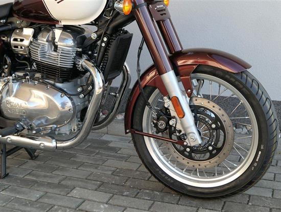 -sebejistotu a plynulost jízdy bez ohledu na to, kam máte namířeno, zajistí ověřené přední odpružení modelu Classic 650 i dvoutrubkové hydraulické zadní odpružení od společnosti Showa.