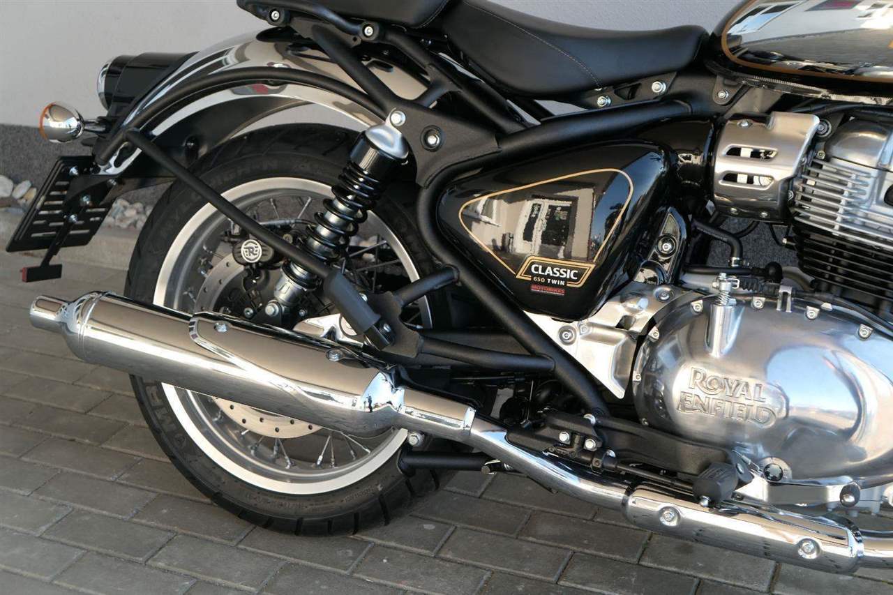 -model Classic vstupuje do éry 650 se dvěma vysoce výkonnými výfuky typu Peashooter v zářivé chromové úpravě, která jim dává zbrusu nový vzhled i zvuk.