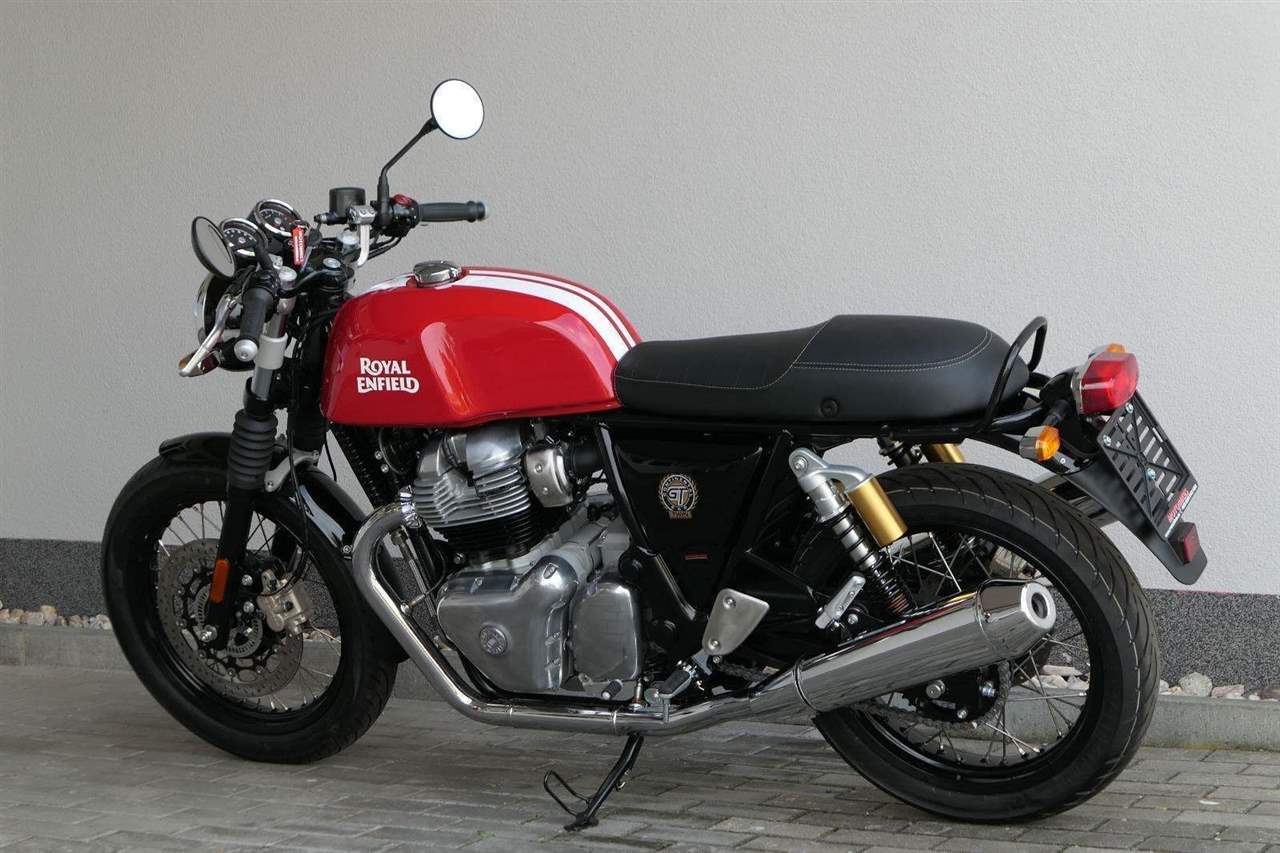 Model GT650 odráží styl svého předchůdce, ale je to zcela nový motocykl. Jeho ergonomie nabízí snadný dosah na řidítka pro optimální kombinace pocitu z řízení a pohodlí. Zadní opěrky nohou zlepšují oporu v zatáčkách, čímž jezdce posouvají kupředu, do sportovního pocitu z jízdy na GT. Moderní interpretace kulturní ikony, která je součástí původní britské "kavárny", je výrazem svobodného ducha a deklarace stylu. Inspirován britskou "kavárenskou" kulturou padesátých a šedesátých let. Nový Continental GT 650 Twin zachycuje ducha původního Continental GT 250. Ikona designu, dokonalá směs tradice a moderny s dychtivým přístupem a závodním posedem se všemi znaky tradičního Cafe Racera. Rám, vyvinutý ve spojení s legendárním Harris Performance, důkladně testován na odolnost, nabízí vynikající rovnováhu a ovladatelnost. Spolu s jemně vyladěným odpružením s dvojitými tlumiči naplněnými plynem pro dosažení optimální kombinace pohodlí a cítění podvozku zajišťuje, že s GT 650 je jízda dynamická a živá jako nikdy předtím. Klasická estetika 18 "kola s leštěným lemem je osazena pneumatikami Pirelli Phantom SportComp, jejichž konstrukce a složení byly speciálně vyvinuty pro Royal Enfield pro doplnění podvozku a odpružení ve všech jízdních podmínkách. Kombinace dvojitého pístu odvozeného od Brembo, plovoucí přední disk a dvoukanálový systém ABS Bosch zajišťují spolehlivé brzdění s progresivní zpětnou vazbou. Vzduchem / olejem chlazená paralelní dvojitá konfigurace, která byla vybrána pro své nezahlcené linie. Motor 648 cm3 vytvořen pro jízdu v reálném světě, s dostatečnou silou pro lehkou jízdu v městské dopravě nebo bez námahy na otevřené cestě. Dvojité těleso škrticí klapky spárované s vysoce přesným systémem vstřikování paliva Bosch vede k vynikající odezvě škrtící klapky v celém rozsahu otáček. Zatímco nádherně tvarované linie lesklého, ručně leštěného hliníkového motoru pokrývají zlatou éru motocyklů, to, co nutí otáčet hlavy, je hluboký zvuk výfuku - vytvářející buď opojný rytmické bublání, nebo mohutné dunění. Royal Enfield poprvé používá šestistupňovou převodovku, vyvinutou speciálně pro 650 Twin - prošla náročným testováním, s pečlivě vybranými převodovými poměry, které dodávají nejlepší poměr pro všechny jízdní podmínky. Výsledek je patrný z optimálního řazení a ideálního záběru. Převodovka je doplněna o spojku, která má asistovanou funkci pro lehký stisk páky.