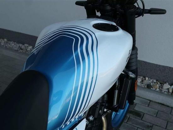 Celkově má Guerilla poměrně moderní tvary, Royal ale zdůrazňuje, že zde nejsou žádné nadbytečné plasty a serepetičky, a že jde v principu o jednoduchou a zábavnou motorku – což koneckonců spojuje všechny modely Royal Enfieldu. Opět je nutné pochválit výběr barev, který je vychytaný přesně tak, jak jsme u Royalu zvyklí. Z celkem pěti zbarvení je jenom jedno nudné, a sice jednolitá stříbrná Smoke Silver. Zbytek, tedy Brava Blue, Yellow Ribbon, Playa Black a Gold Dip zajímavě kombinují barevnou grafiku a ve třech případech dostanete i barevné ráfky.