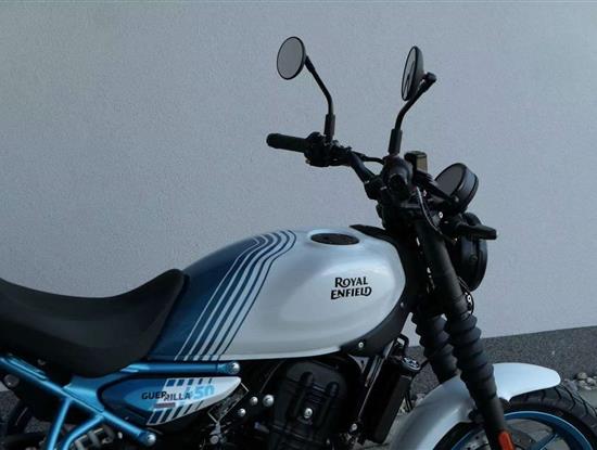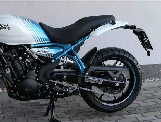 Royal Enfield Guerrilla 450 sdílí motor a technický základ s cestovním endurem Himalayan 450, stojí ale na malých silničních kolech a místo cestování míří na každodenní dojíždění, i na radovánky okolo komína.