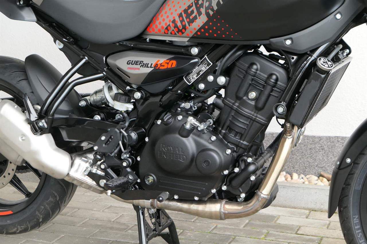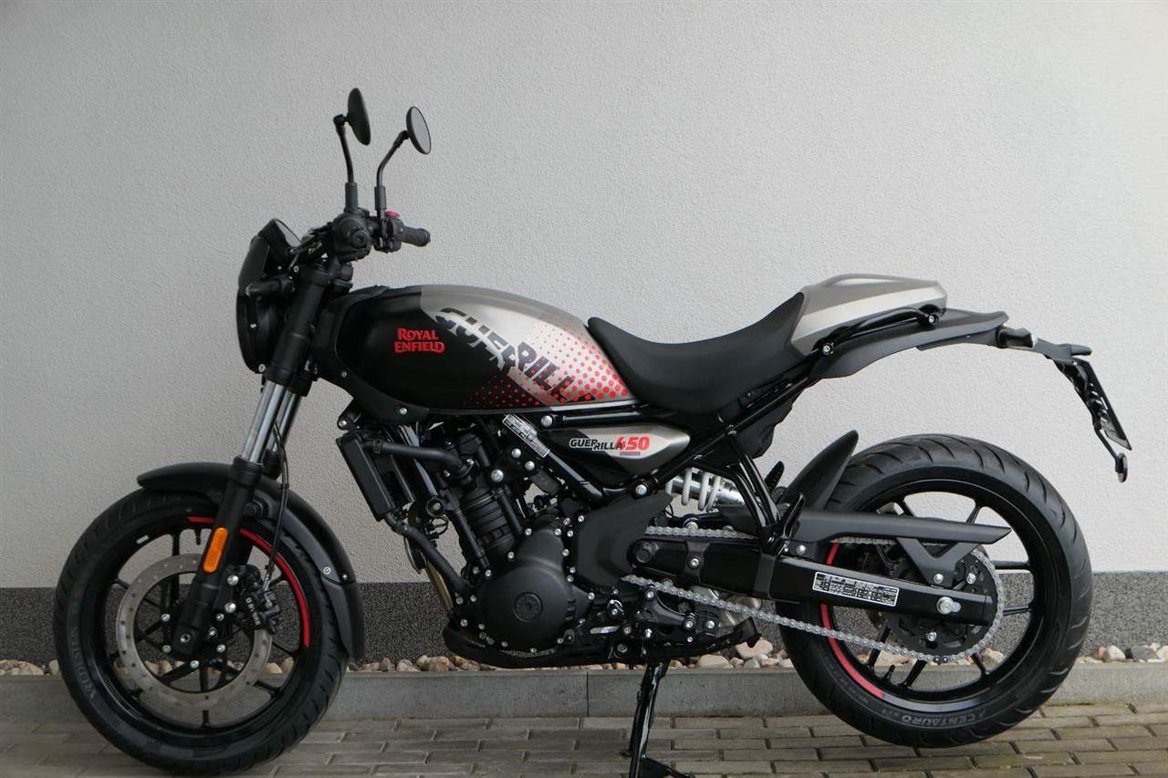 Guerrilla 450 sdílí motor a platformu s modelem Royal Enfield Himalayan 450, ale místo cestování je zaměřená na silnici, každodenní dojíždění a zábavu v zatáčkách.