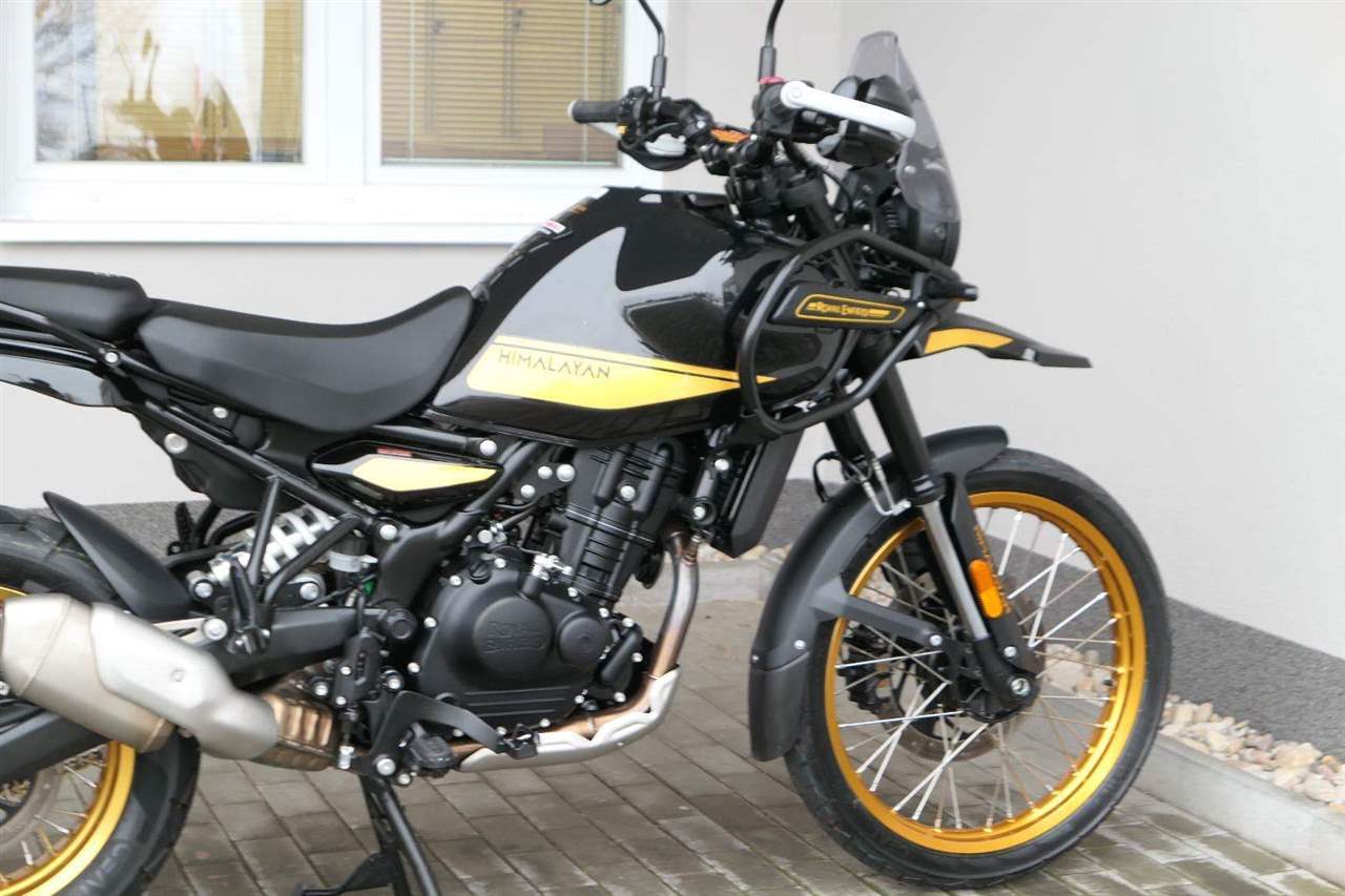 Nový Himalayan, který je evolučním skokem vpřed oproti svému původnímu modelu, jenž bořil mýty, je poháněn motorem Sherpa 450, prvním kapalinou chlazeným motorem společnosti Royal Enfield. Je připraven na dobrodružství s upside-down přední vidlicí a novými funkcemi, jako je Ride-by-Wire a navigační TFT displej TripperDash s plnou mapou.