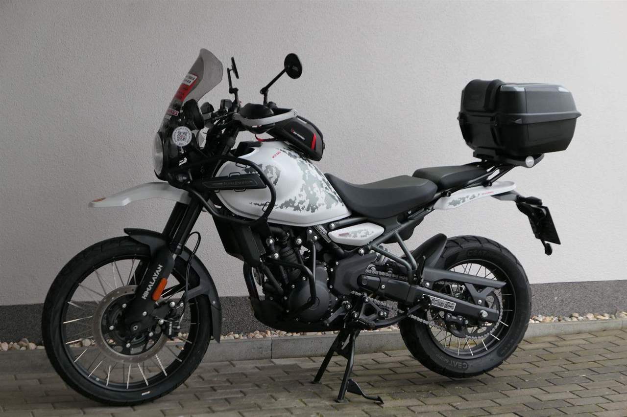 Nový Himalayan, který je evolučním skokem vpřed oproti svému původnímu modelu, jenž bořil mýty, je poháněn motorem Sherpa 450, prvním kapalinou chlazeným motorem společnosti Royal Enfield. Je připraven na dobrodružství s upside-down přední vidlicí a novými funkcemi, jako je Ride-by-Wire a navigační TFT displej TripperDash s plnou mapou.