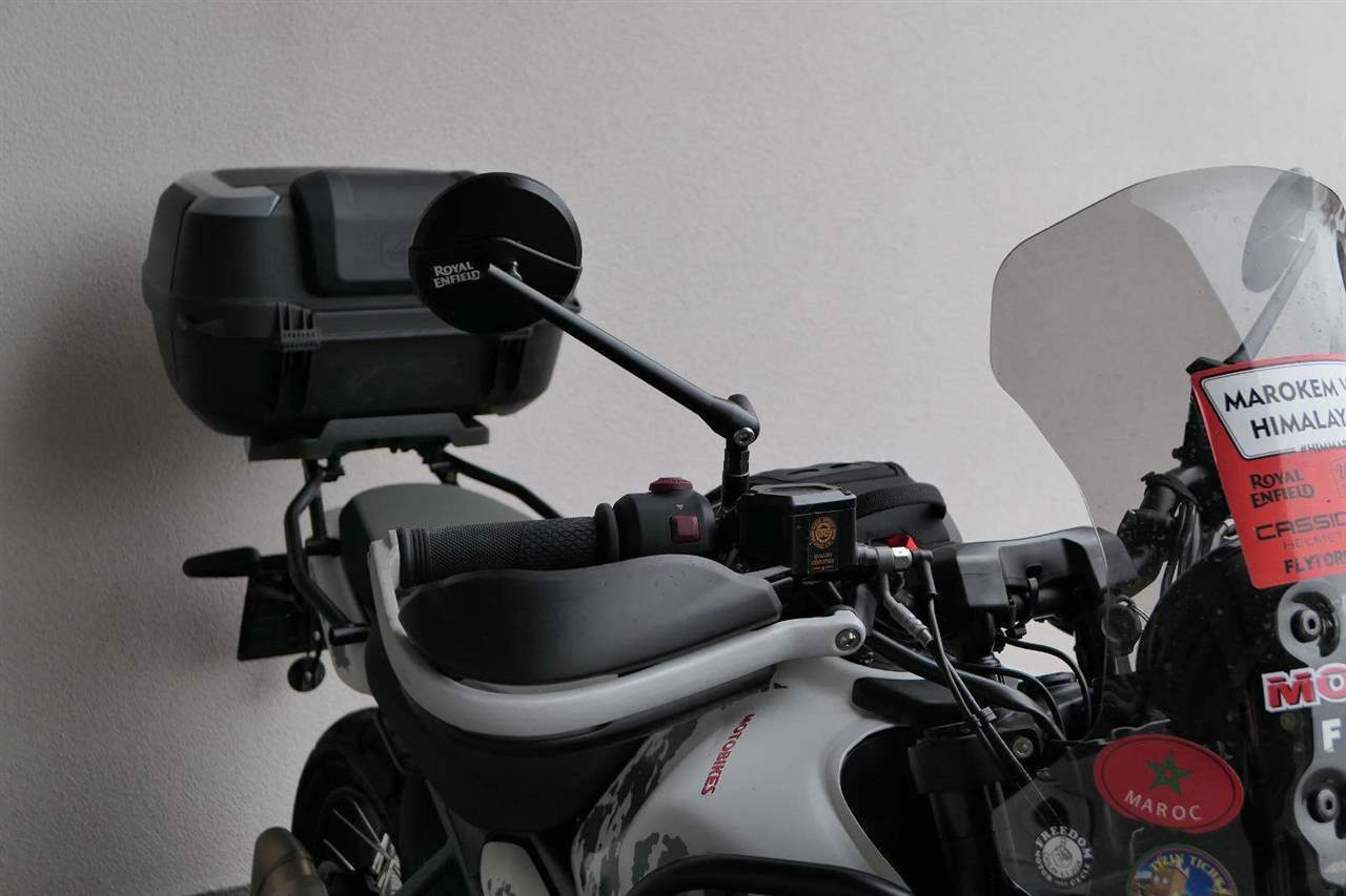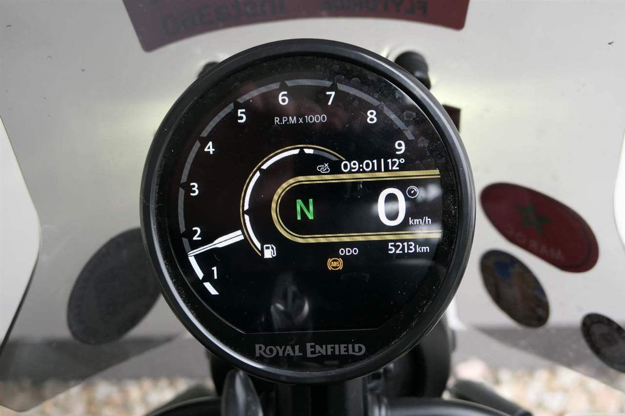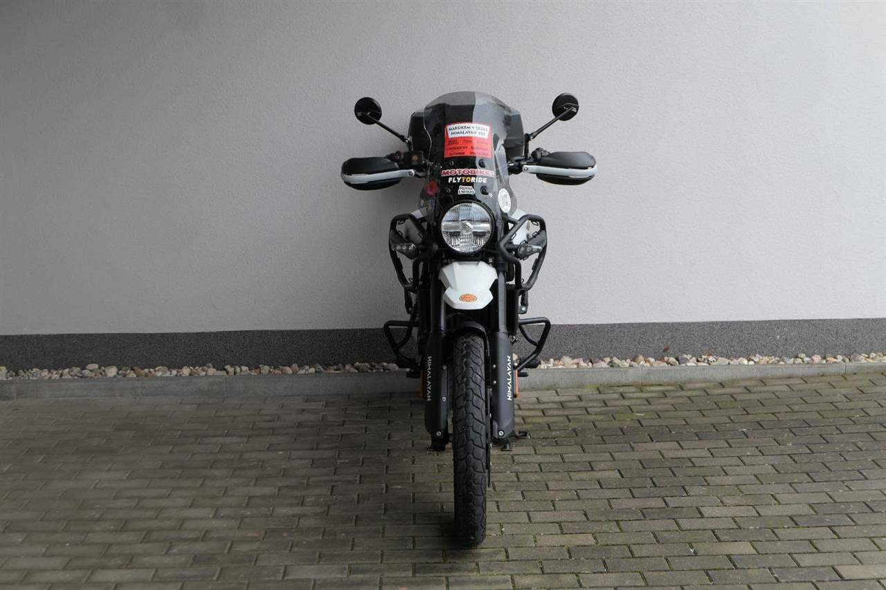 Prodáme náš předváděcí motocykl Royal Enfield Himalayan 450 v atraktivní barvě Kamet White.