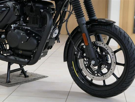 HNTR 350 je jediný vyráběný model Royal Enfield, který používá super ovladatelné 17” přední a zadní pneumatiky a nápadná litá kola. S bezdušovými pneumatikami můžete jet bez přerušení tak dlouho, jak chcete, bez strachu z píchnutí.
