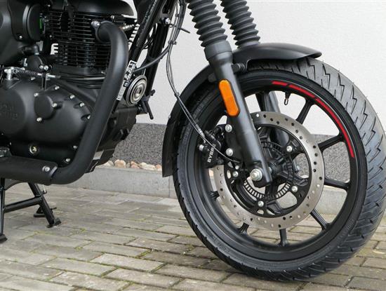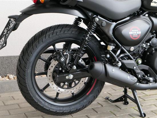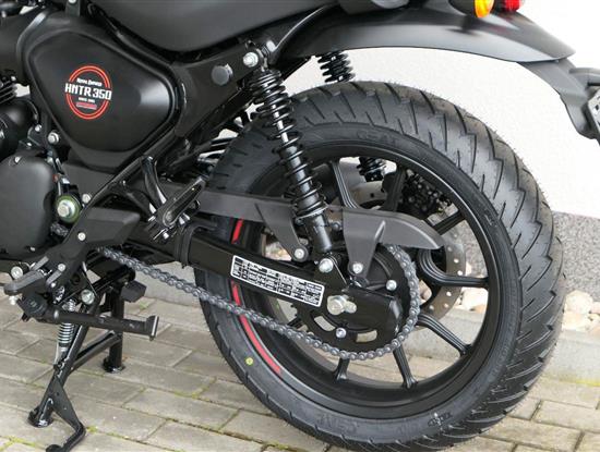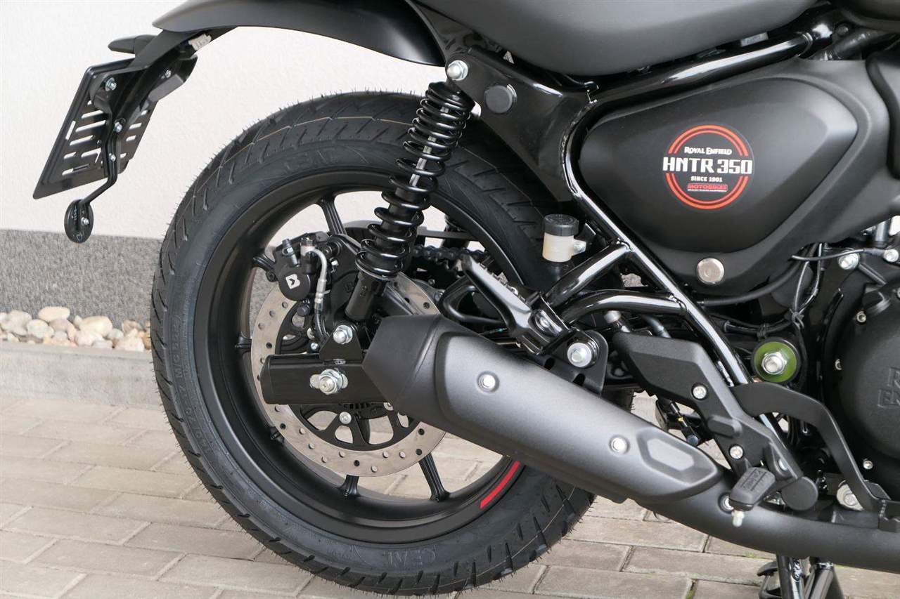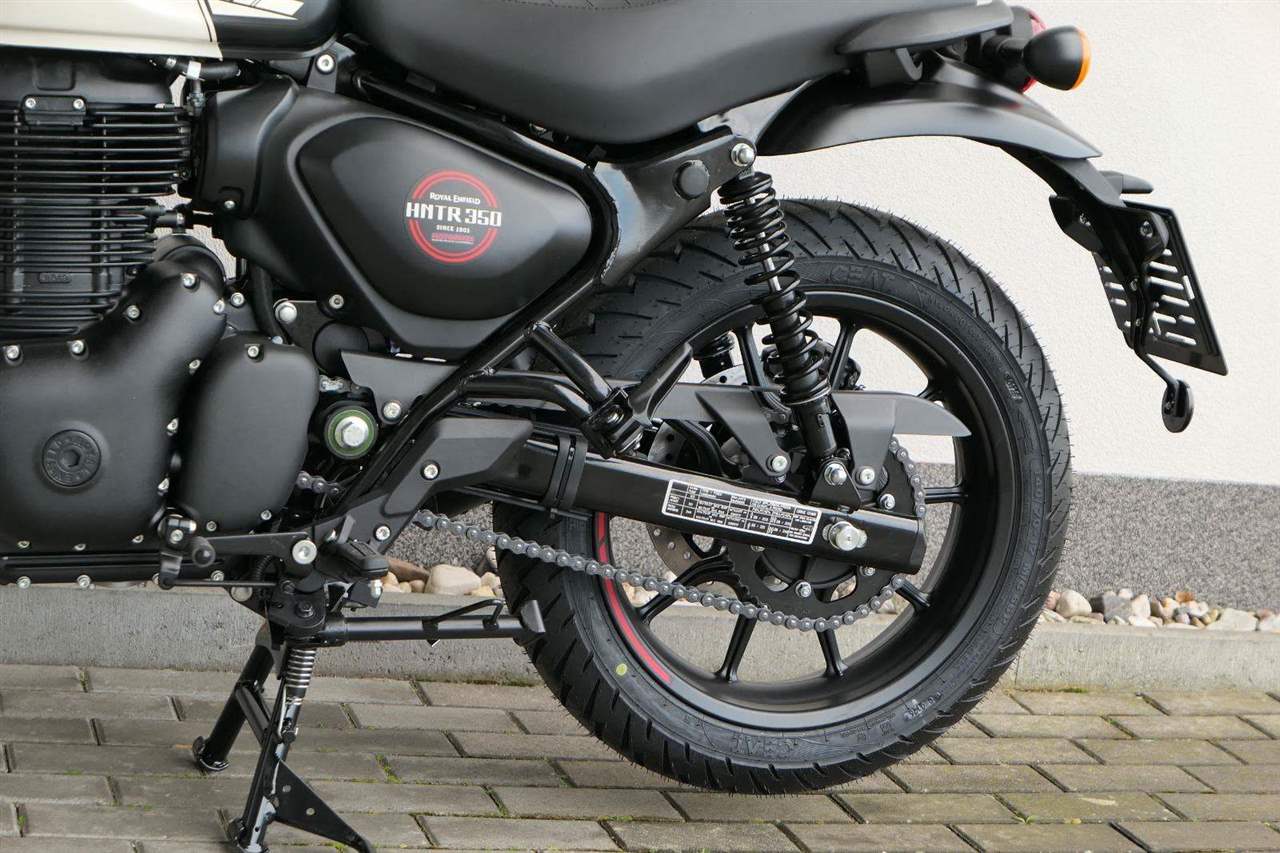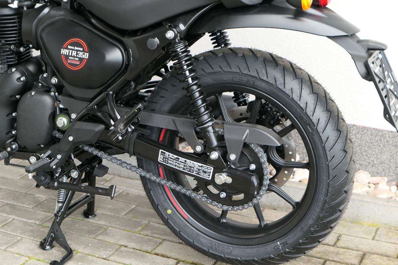 HNTR 350 je jediný sériově vyráběný model Royal Enfield vybavený 17" předním i zadním kolem s nápadnými litými ráfky. Bezdušové pneumatiky zvyšují praktičnost a pohodlí při každodenním provozu.