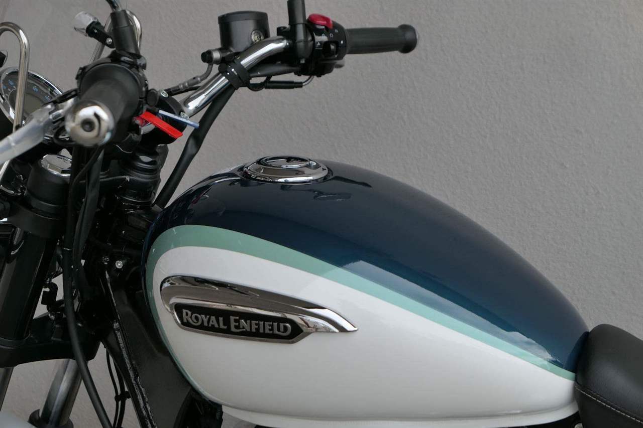 Meteor 350 Aurora Retro Green není o rychlosti.
