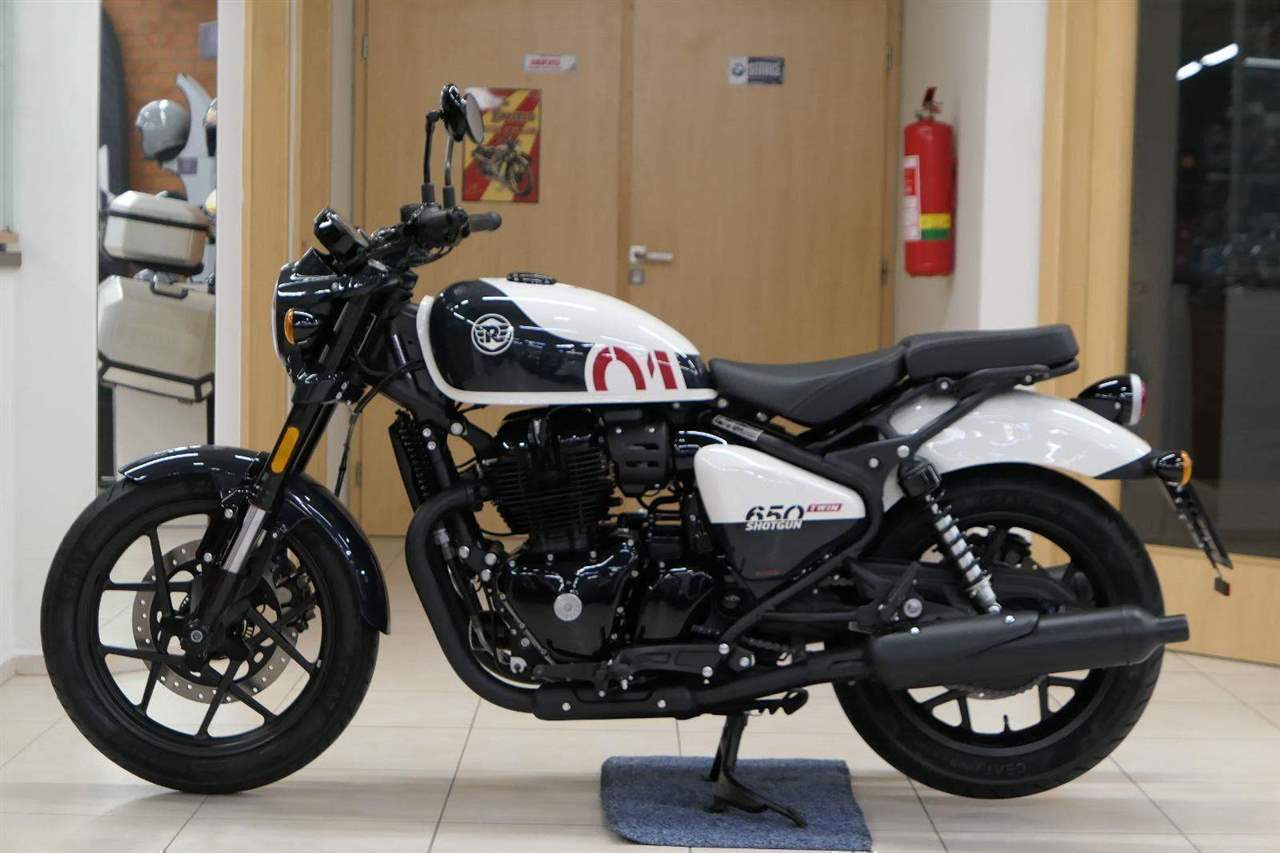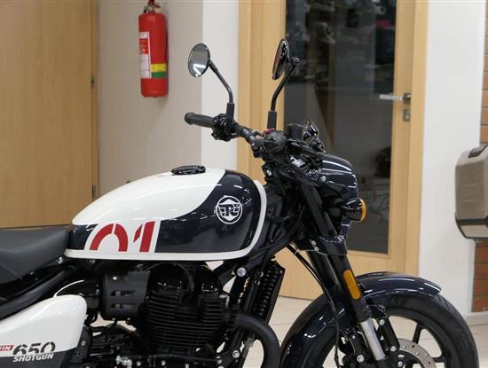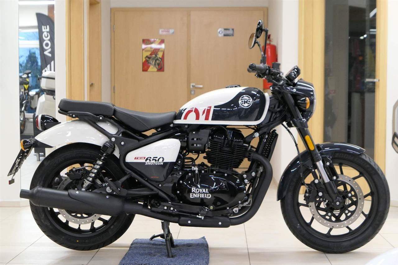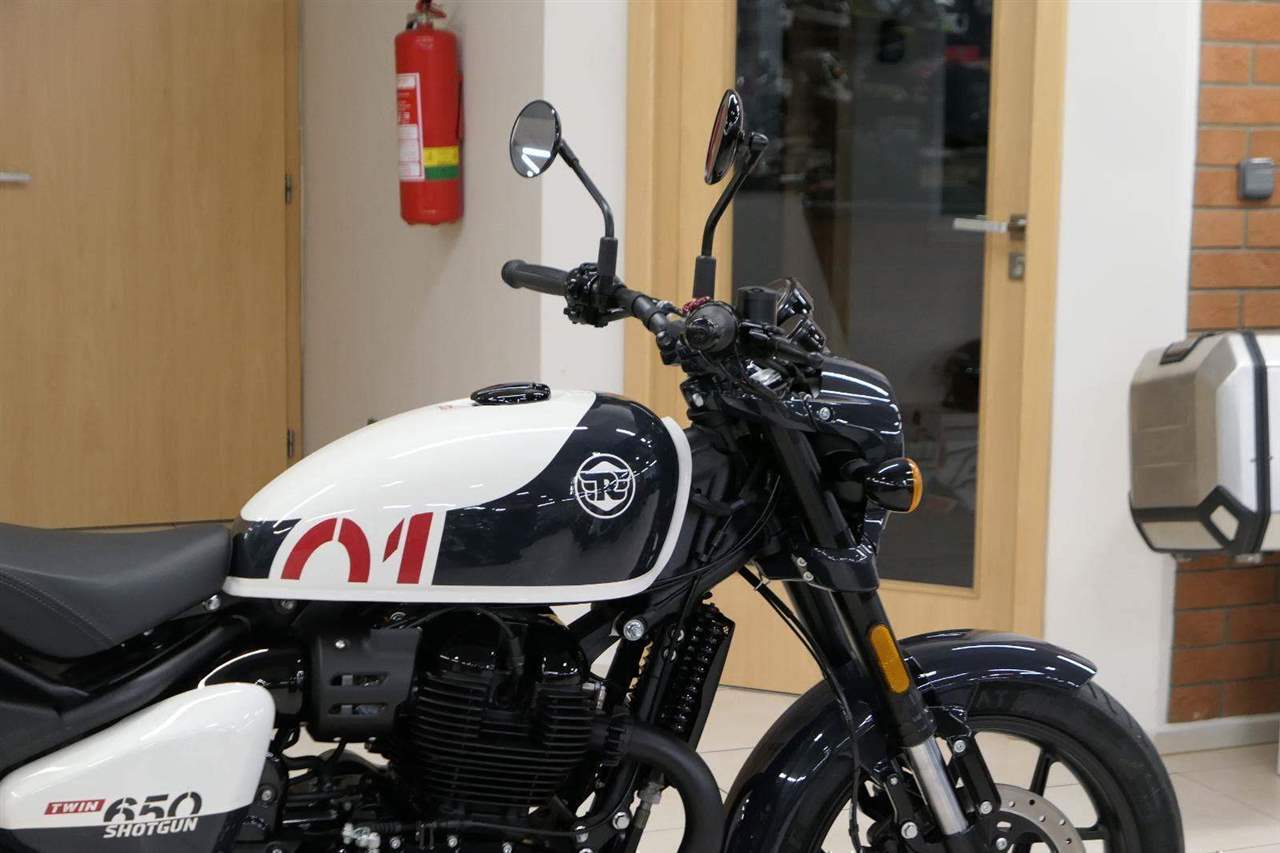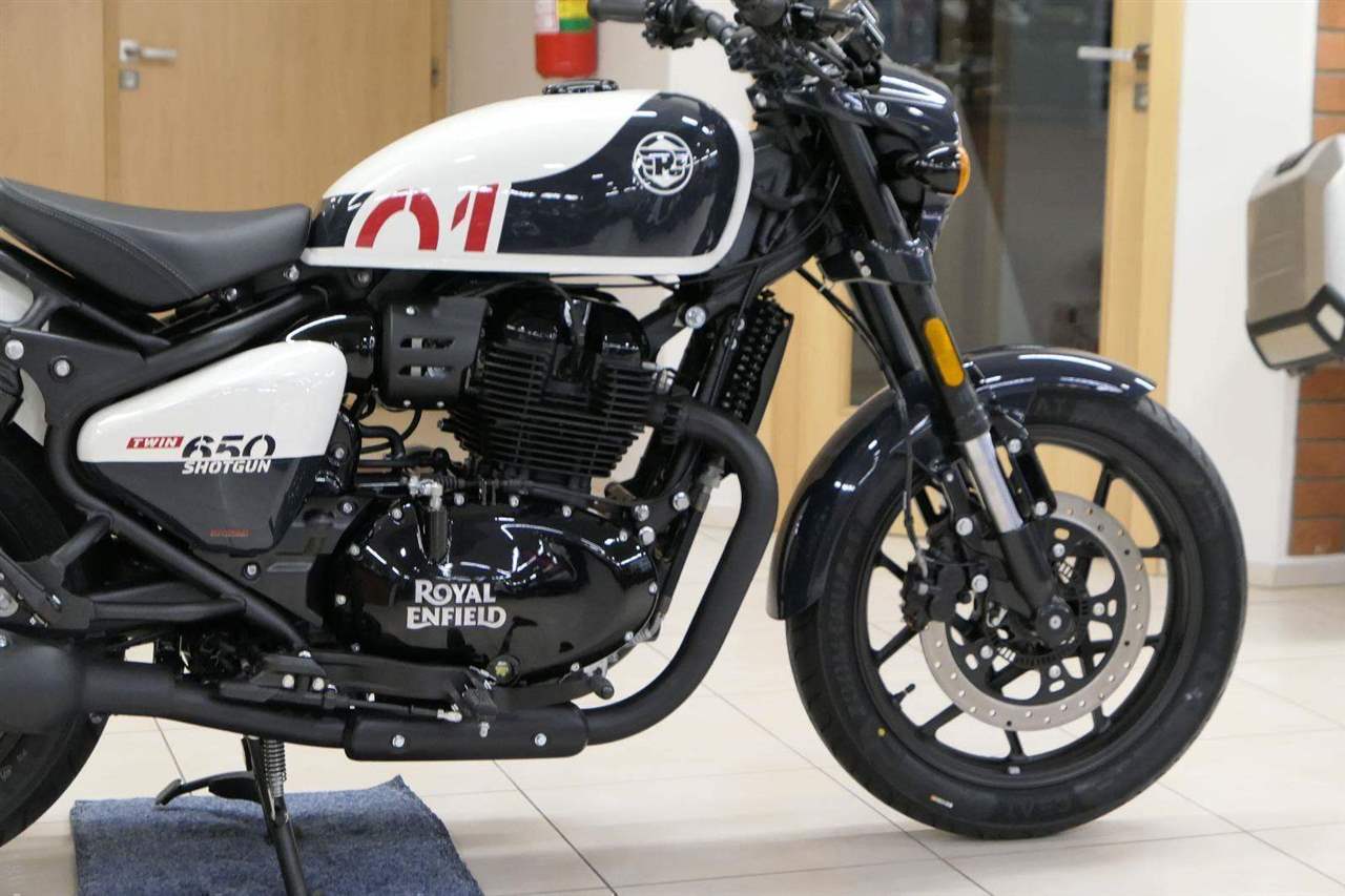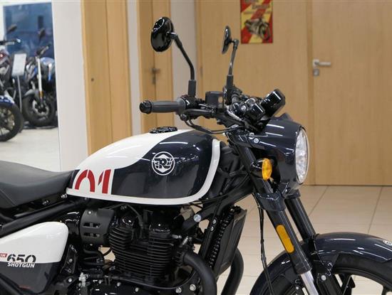 Nový Royal Enfield Shotgun 650 je motocykl, který je definován svým jezdcem. Jeho zcela nová karoserie a postoj jsou prázdným plátnem, které se vzpírá tradiční kategorizaci motocyklů a přebírá osobnost svého jezdce. Jeho modulární konstrukce umožňuje snadné přepínání mezi třemi režimy - od jednomístného přes dvoumístný až po cestovní vůz pro přepravu zavazadel. Otočením klíčku se odklopí sedadlo spolujezdce, což nabízí maximální flexibilitu. Těm, kteří hledají poutavou a agresivní jízdu, nebo těm, kteří hledají pohodovější zážitek, Shotgun 650 bez námahy vyhoví svou vzpřímenou a jistou jízdní pozicí, která podporuje obojí a přizpůsobuje se náladě a stylu jízdy jezdce. Kombinuje retro-futuristický design s moderními prvky. LED světlomet umístěný v nádherné neomoderní gondole na zakázku zůstává věrný estetice neo-retro fúze a zároveň nabízí lepší viditelnost. Motocykl je vybaven digitálně-analogovým sdruženým přístrojem, který je vybaven navigačním systémem Tripper a je navržen tak, aby poskytoval všechny informace, které potřebujete, když se vydáte na cestu. Je také vybaven nabíjecím portem USB, abyste měli svá zařízení na cestách stále nabitá.