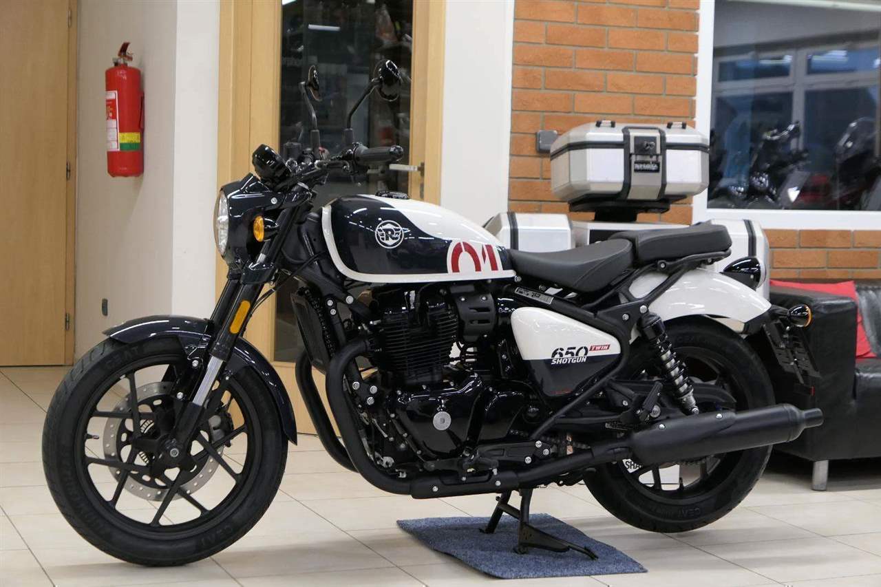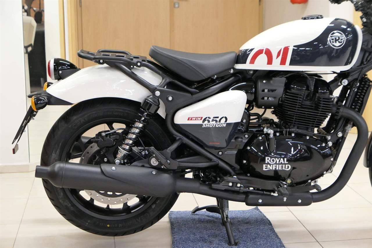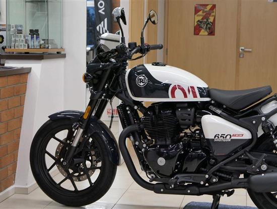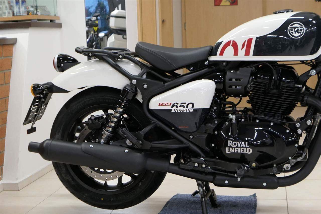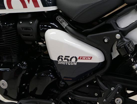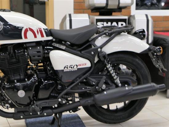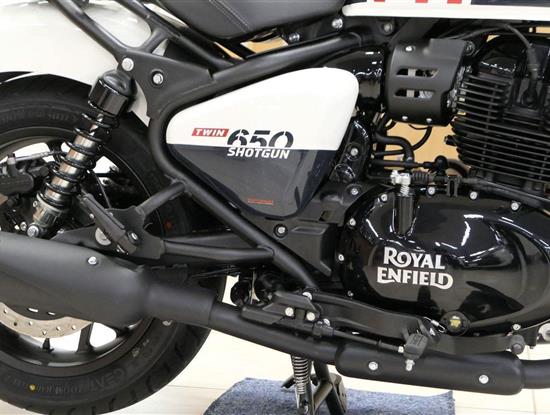 Nový Royal Enfield Shotgun 650 je motocykl, který je definován svým jezdcem. Jeho zcela nová karoserie a postoj jsou prázdným plátnem, které se vzpírá tradiční kategorizaci motocyklů a přebírá osobnost svého jezdce. Jeho modulární konstrukce umožňuje snadné přepínání mezi třemi režimy - od jednomístného přes dvoumístný až po cestovní vůz pro přepravu zavazadel. Otočením klíčku se odklopí sedadlo spolujezdce, což nabízí maximální flexibilitu. Těm, kteří hledají poutavou a agresivní jízdu, nebo těm, kteří hledají pohodovější zážitek, Shotgun 650 bez námahy vyhoví svou vzpřímenou a jistou jízdní pozicí, která podporuje obojí a přizpůsobuje se náladě a stylu jízdy jezdce. Kombinuje retro-futuristický design s moderními prvky. LED světlomet umístěný v nádherné neomoderní gondole na zakázku zůstává věrný estetice neo-retro fúze a zároveň nabízí lepší viditelnost. Motocykl je vybaven digitálně-analogovým sdruženým přístrojem, který je vybaven navigačním systémem Tripper a je navržen tak, aby poskytoval všechny informace, které potřebujete, když se vydáte na cestu. Je také vybaven nabíjecím portem USB, abyste měli svá zařízení na cestách stále nabitá.