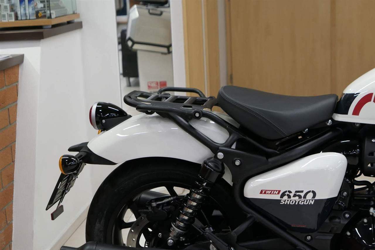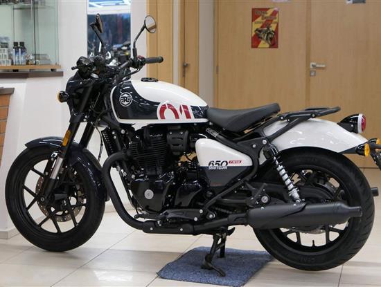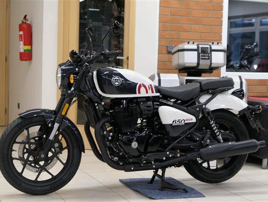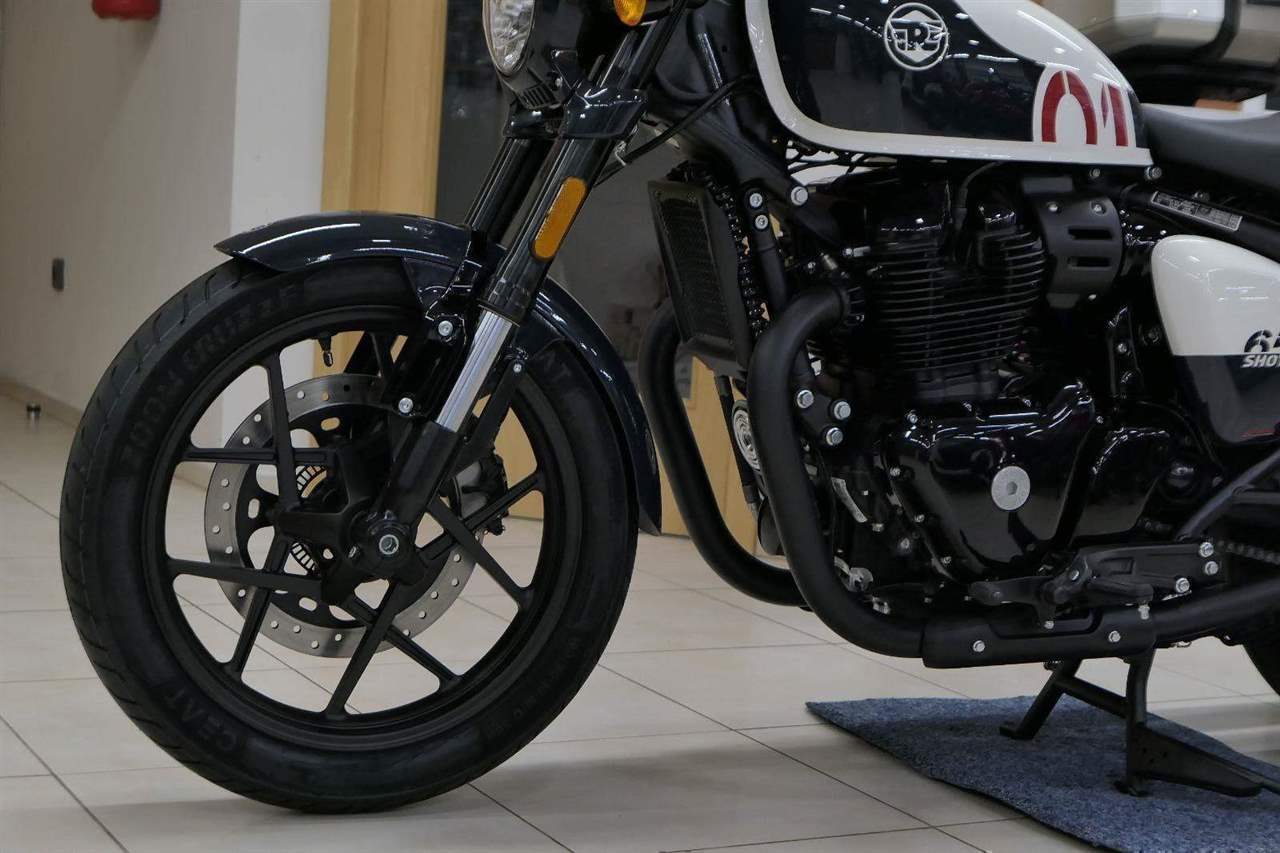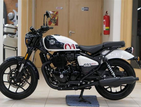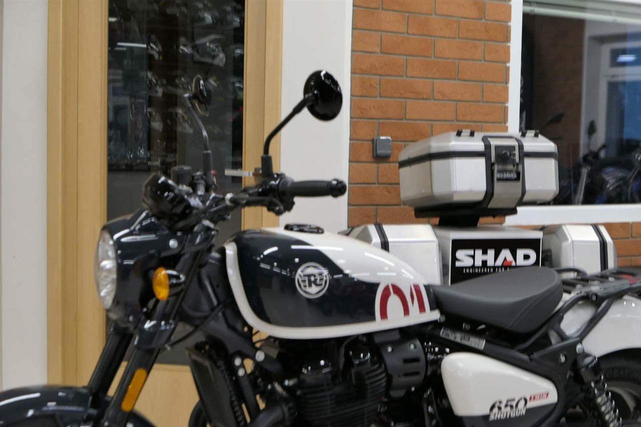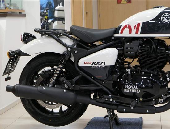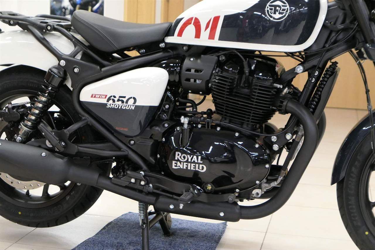 Nový Royal Enfield Shotgun 650 je motocykl, který je definován svým jezdcem. Jeho zcela nová karoserie a postoj jsou prázdným plátnem, které se vzpírá tradiční kategorizaci motocyklů a přebírá osobnost svého jezdce. Jeho modulární konstrukce umožňuje snadné přepínání mezi třemi režimy - od jednomístného přes dvoumístný až po cestovní vůz pro přepravu zavazadel. Otočením klíčku se odklopí sedadlo spolujezdce, což nabízí maximální flexibilitu. Těm, kteří hledají poutavou a agresivní jízdu, nebo těm, kteří hledají pohodovější zážitek, Shotgun 650 bez námahy vyhoví svou vzpřímenou a jistou jízdní pozicí, která podporuje obojí a přizpůsobuje se náladě a stylu jízdy jezdce. Kombinuje retro-futuristický design s moderními prvky. LED světlomet umístěný v nádherné neomoderní gondole na zakázku zůstává věrný estetice neo-retro fúze a zároveň nabízí lepší viditelnost. Motocykl je vybaven digitálně-analogovým sdruženým přístrojem, který je vybaven navigačním systémem Tripper a je navržen tak, aby poskytoval všechny informace, které potřebujete, když se vydáte na cestu. Je také vybaven nabíjecím portem USB, abyste měli svá zařízení na cestách stále nabitá.