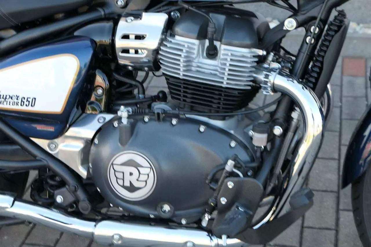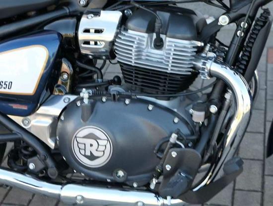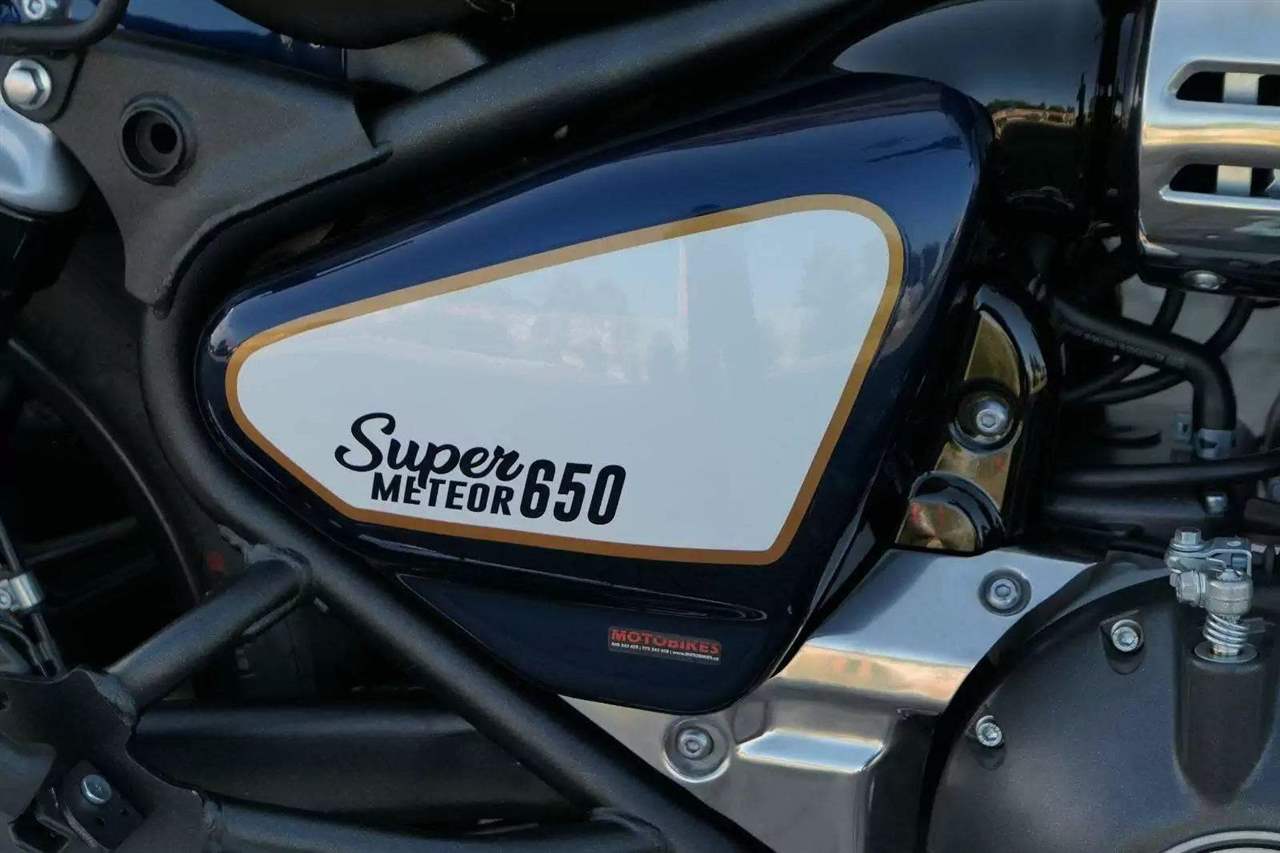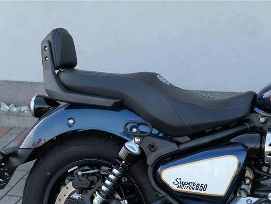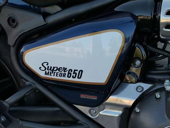 Super Meteor 650 byl vytvořen na základě našeho trvalého přesvědčení, že lidé se při cestování nesmějí nechat omezovat hodinami nebo kilometry. Hnací silou motocyklu Super Meteor 650 je náš ikonický řadový dvouválcový motor, který vyniká plynulým řazením převodových stupňů, silným zrychlením v nízkých otáčkách a hladkou a plynulou odezvou na plyn. Nízko posazené, široké sedlo a uvolněná řidičská pozice zajistí pohodlný zážitek z jízdy bez ohledu na to, kolik kilometrů máte za sebou a kolik je před vámi. Prostorná kapkovitá nádrž motocyklu Super Meteor 650 pojme až 15,7 litrů paliva, díky čemuž můžete i ty nejdelší jízdy absolvovat bez přerušení. Obrácené vidlice na předním odpružení přinášejí naprostou jistotu a kontrolu na otevřených dálnicích, přeplněných ulicích a všech dalších cestách. Zcela nový přední světlomet je kombinací retro estetiky a moderního LED světla snižující spotřebu energie a zlepšující viditelnost, ať už máte namířeno kamkoli. Na digitálně analogovém přístrojovém panelu s retro nádechem a plovoucí LCD obrazovkou a vestavěnou navigací Tripper máte k dispozici všechny potřebné informace po celý den. Nápadná litá kola s bezdušovými pneumatikami zajišťují, že nic nenaruší vaše plány, a širší zadní pneumatika umožňuje lepší trakci a stabilitu i při nejvyšších rychlostech.