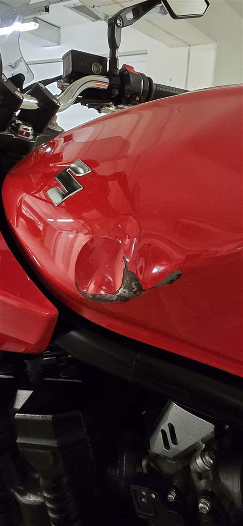 Motorka má jen jednu vadu na kráse a to je promáčklina nádrže od řídítek, když jsem ji nechal stát přes noc na ulici a nějakej expert mi ji shodil ,více viz.foto.
