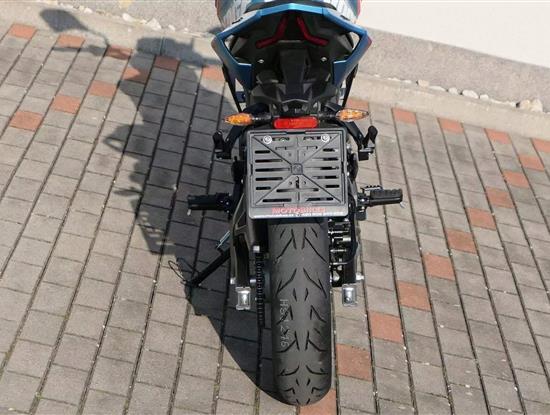 Podvozek je naladěn sportovně, ale přívětivě. Přední upside-down vidlice Ø 35 mm a zadní centrální tlumič zajišťují jistotu v zatáčkách i komfort při běžné jízdě. O bezpečné brzdění se starají kotoučové brzdy vpředu i vzadu doplněné o ABS, které je v základní výbavě. Díky provozní hmotnosti 136 kg je motocykl velmi snadno ovladatelný i pro méně zkušené jezdce.