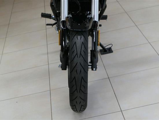 Podvozek je naladěn sportovně, ale přívětivě. Přední upside-down vidlice Ø 35 mm a zadní centrální tlumič zajišťují jistotu v zatáčkách i komfort při běžné jízdě. O bezpečné brzdění se starají kotoučové brzdy vpředu i vzadu doplněné o ABS, které je v základní výbavě. Díky provozní hmotnosti 136 kg je motocykl velmi snadno ovladatelný i pro méně zkušené jezdce.
