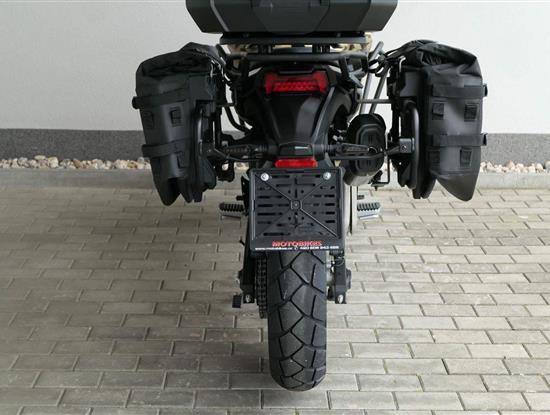 Těšit se můžeš taky na plexi, který si z místa řidiče bez nářadí nastavíš do dvou poloh. Oceníš i hliníkovej kryt motoru, LED světla včetně přídavnejch bodovek, boční i středovej stojan a hafo další výbavičky. Jo, a nově mám taky podsvícený ovladače na řídítkách, takže už žádný tápání ve tmě.