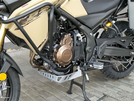 Těšit se můžeš taky na plexi, který si z místa řidiče bez nářadí nastavíš do dvou poloh. Oceníš i hliníkovej kryt motoru, LED světla včetně přídavnejch bodovek, boční i středovej stojan a hafo další výbavičky. Jo, a nově mám taky podsvícený ovladače na řídítkách, takže už žádný tápání ve tmě.