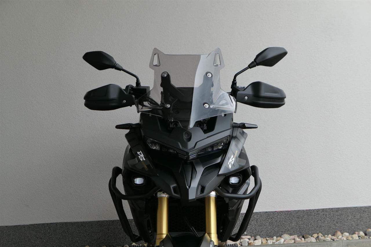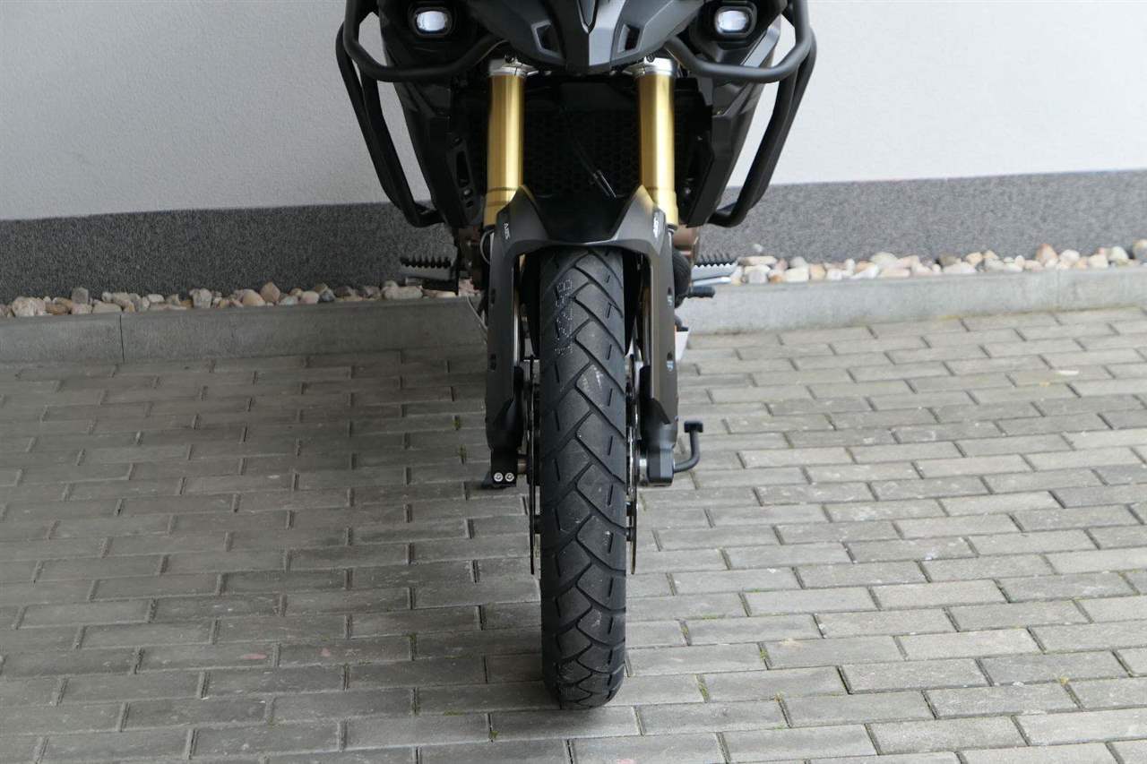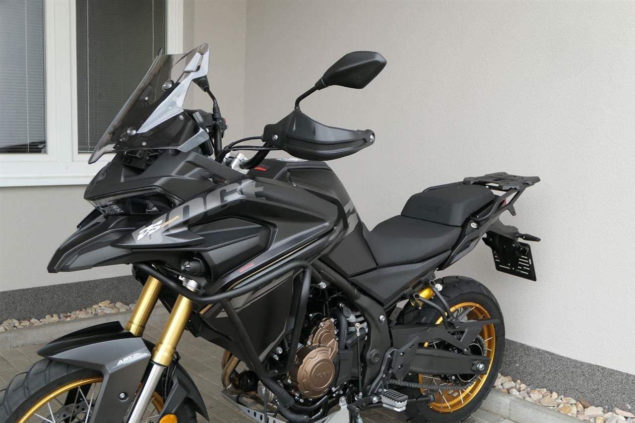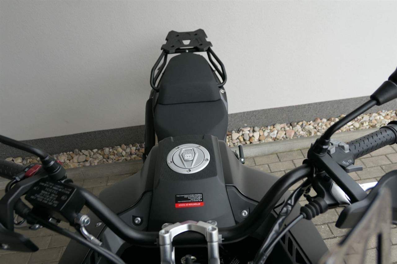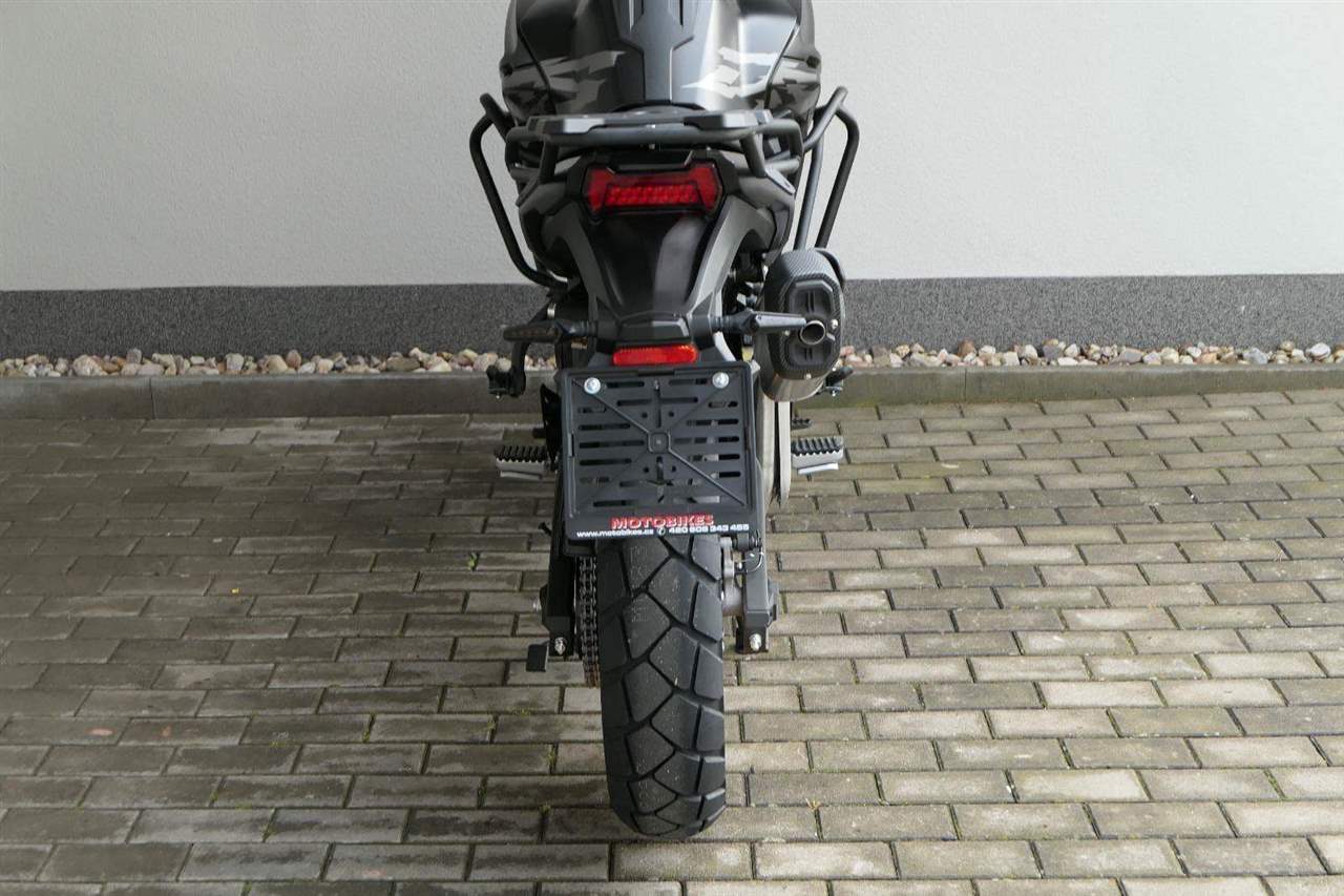 Těšit se můžeš taky na plexi, který si z místa řidiče bez nářadí nastavíš do dvou poloh. Oceníš i hliníkovej kryt motoru, LED světla včetně přídavnejch bodovek, boční i středovej stojan a hafo další výbavičky. Jo, a nově mám taky podsvícený ovladače na řídítkách, takže už žádný tápání ve tmě.