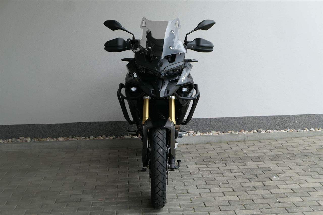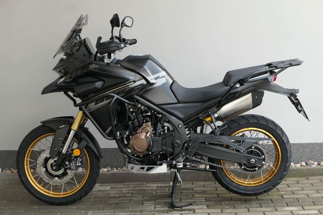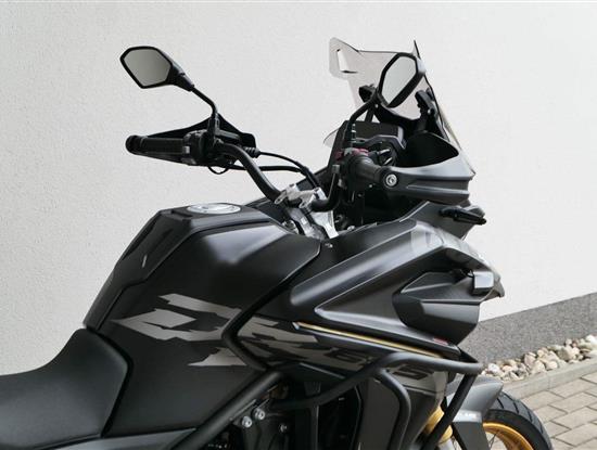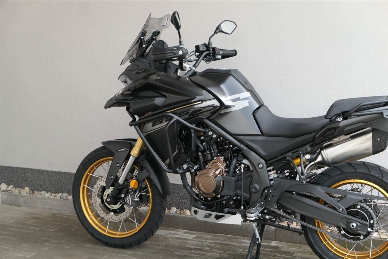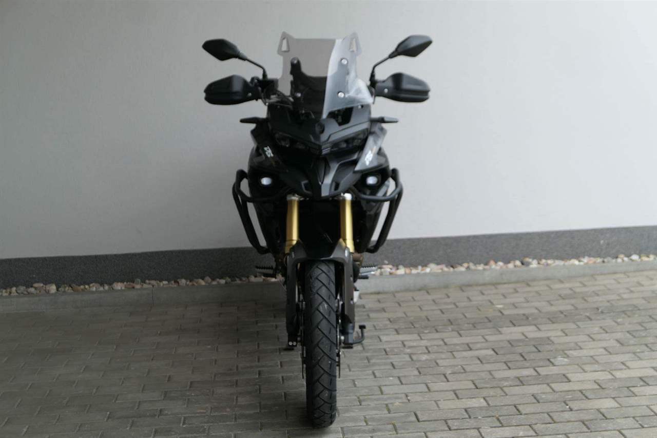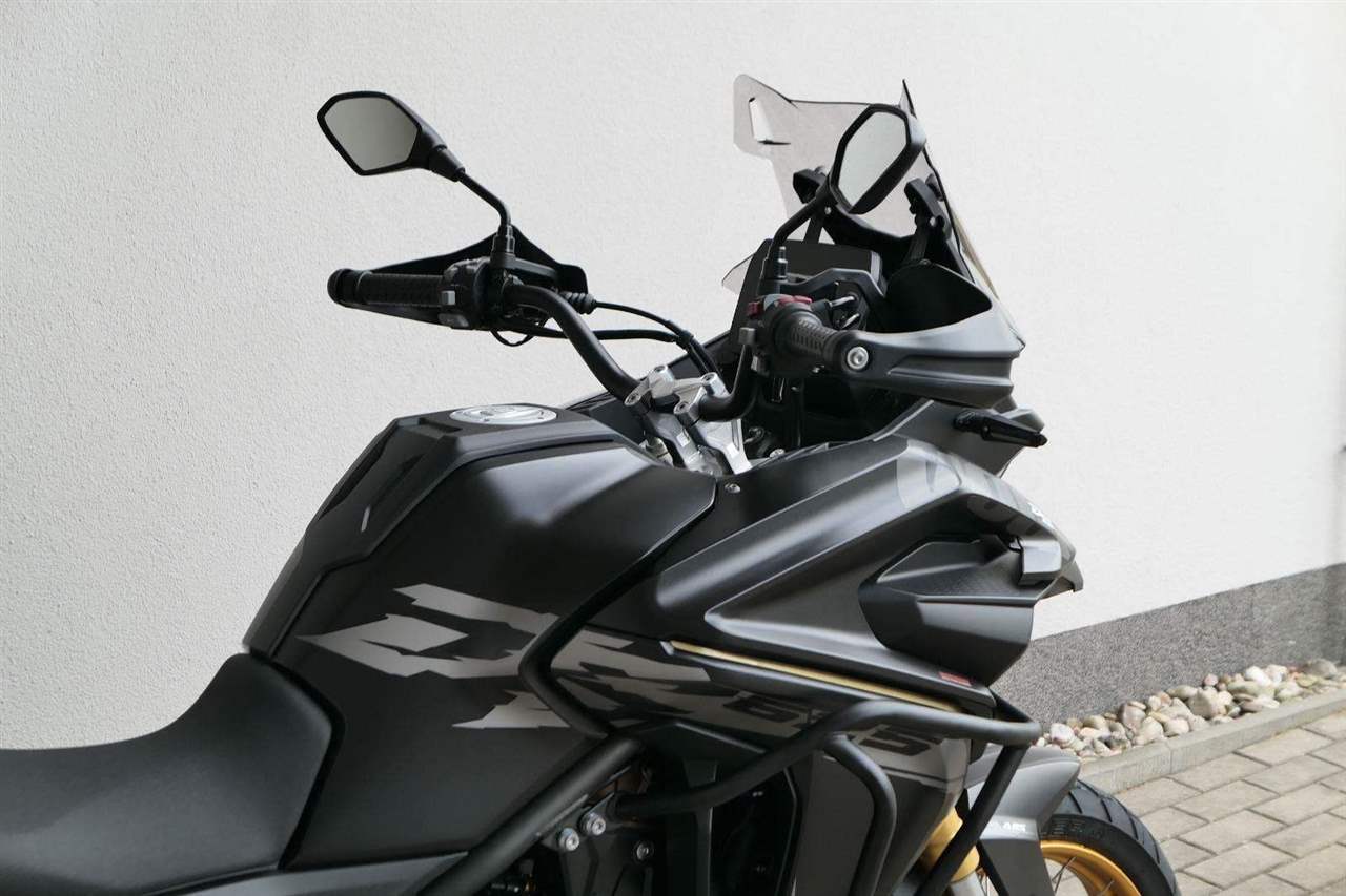 Těšit se můžeš taky na plexi, který si z místa řidiče bez nářadí nastavíš do dvou poloh. Oceníš i hliníkovej kryt motoru, LED světla včetně přídavnejch bodovek, boční i středovej stojan a hafo další výbavičky. Jo, a nově mám taky podsvícený ovladače na řídítkách, takže už žádný tápání ve tmě.